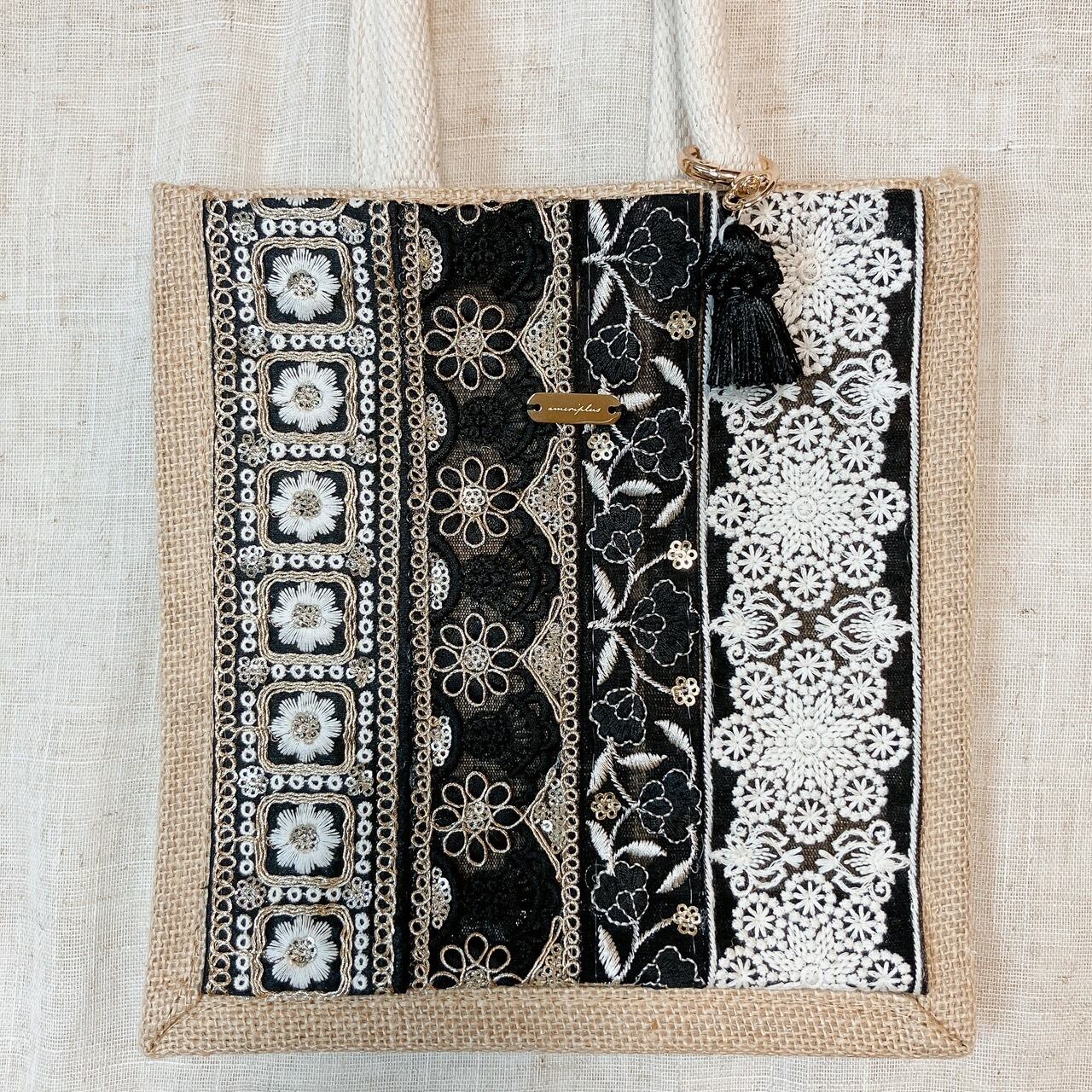 無印のA6サイズのジュートバッグアレンジが2個分作れる、インド刺繍リボンの4種セットです。