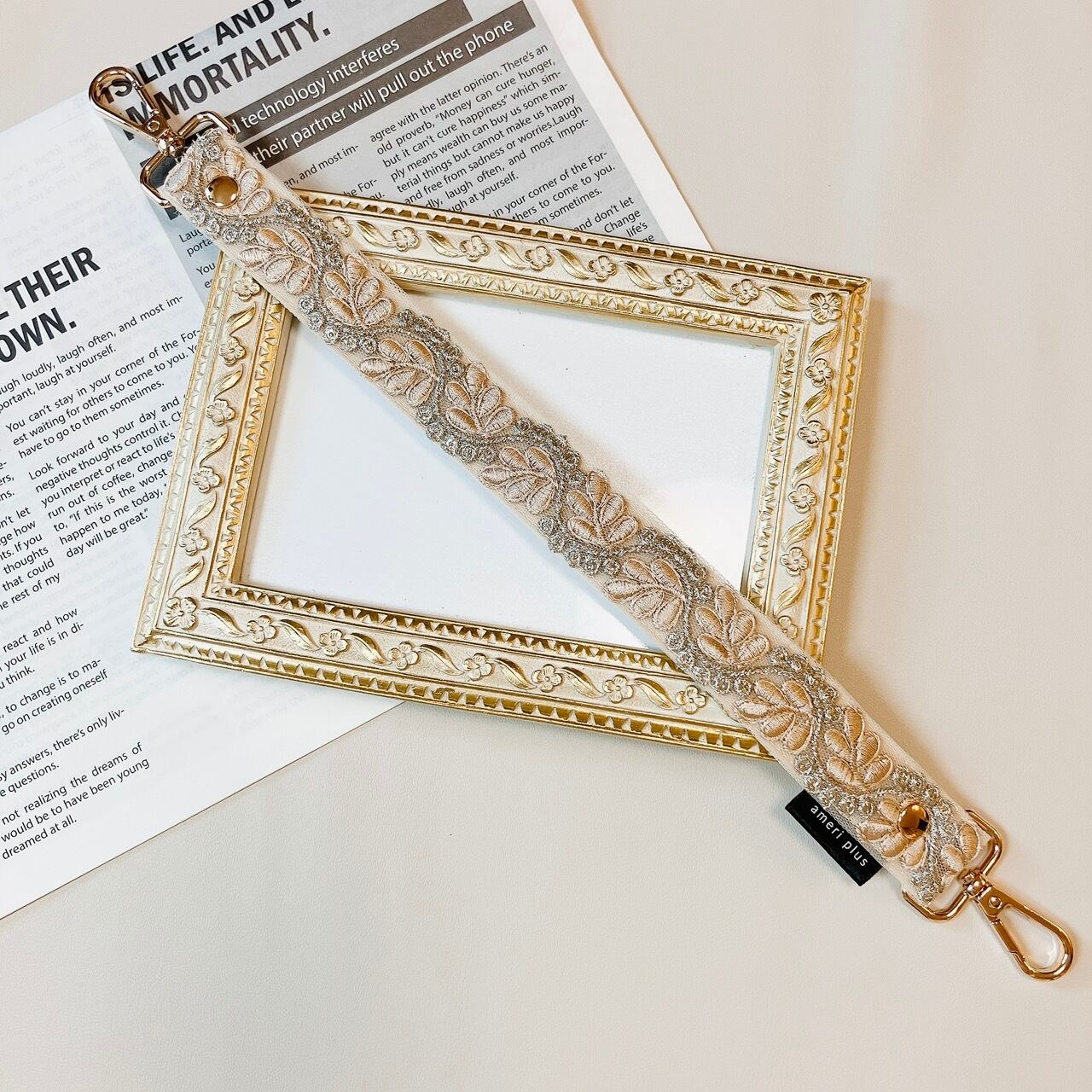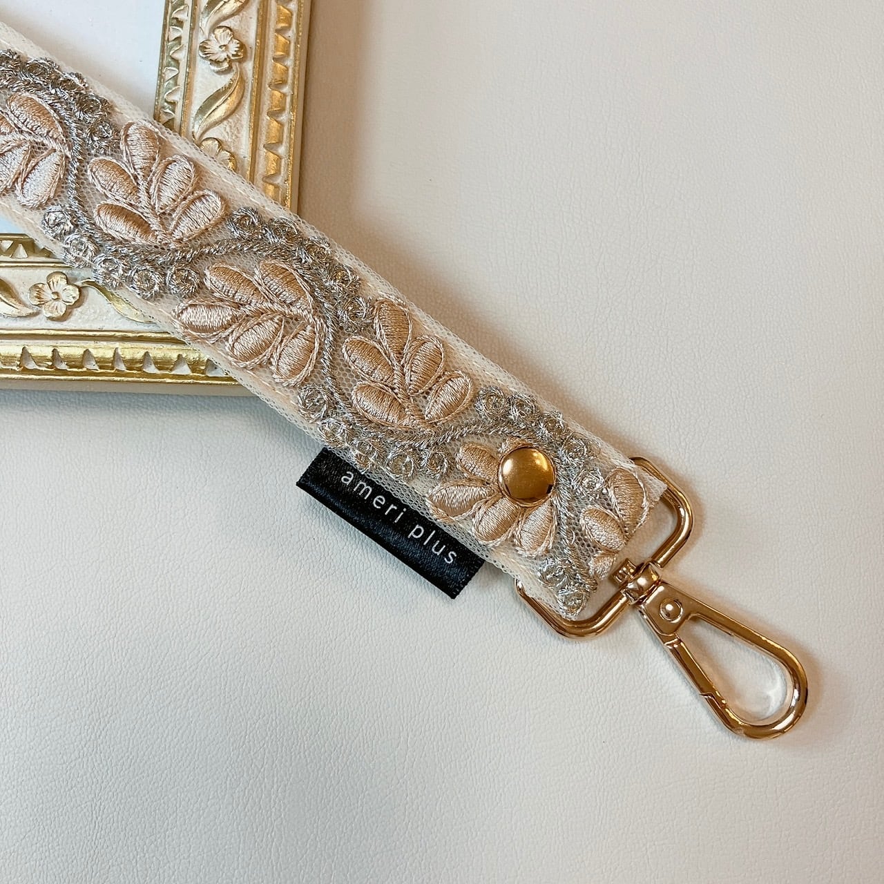 【プレゼント企画当選者様専用ページ】manywayハンドストラップ《インド刺繍×フェイクレザー》シャンパンピンク
