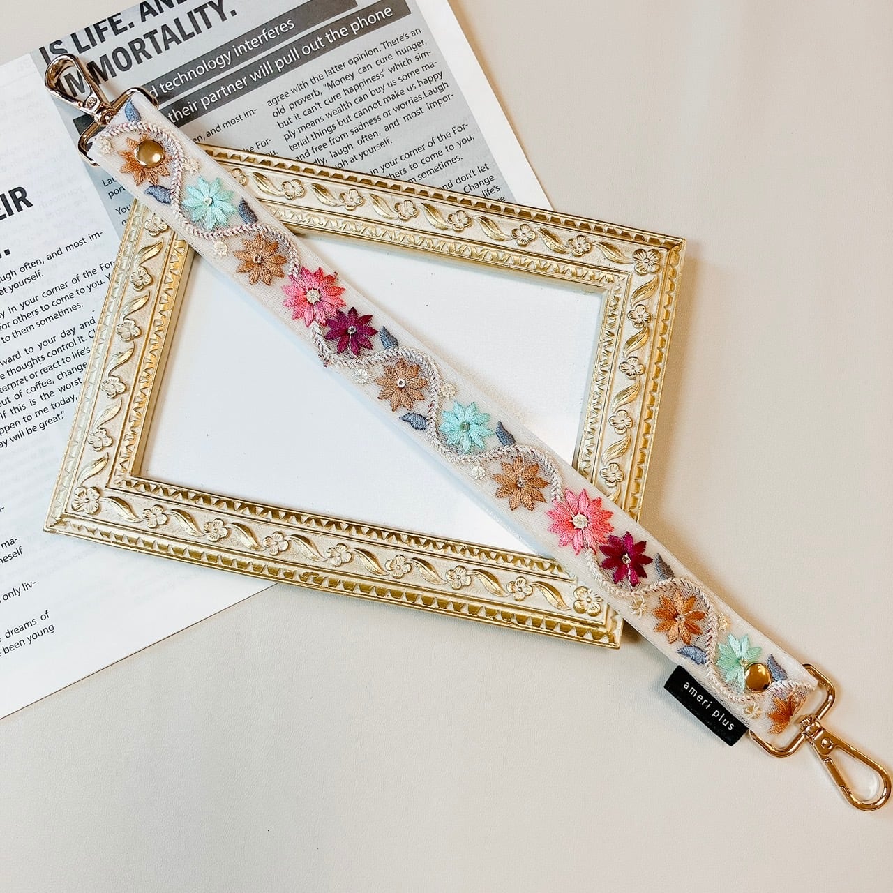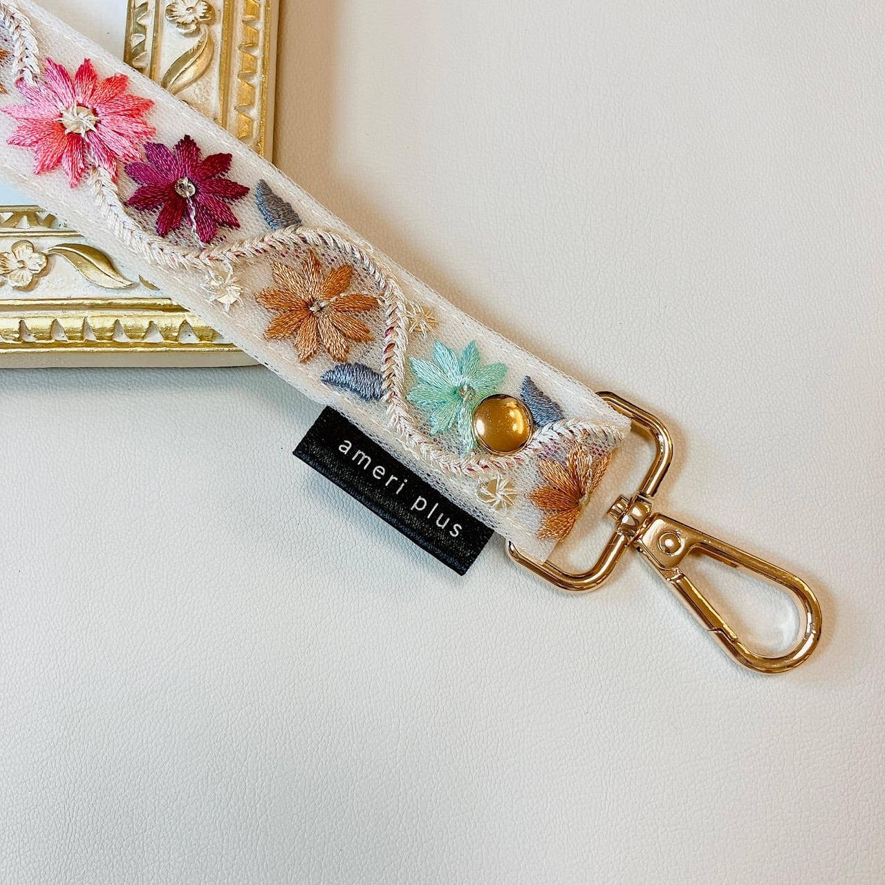【再販】manywayハンドストラップ《インド刺繍×フェイクレザー》アイボリー