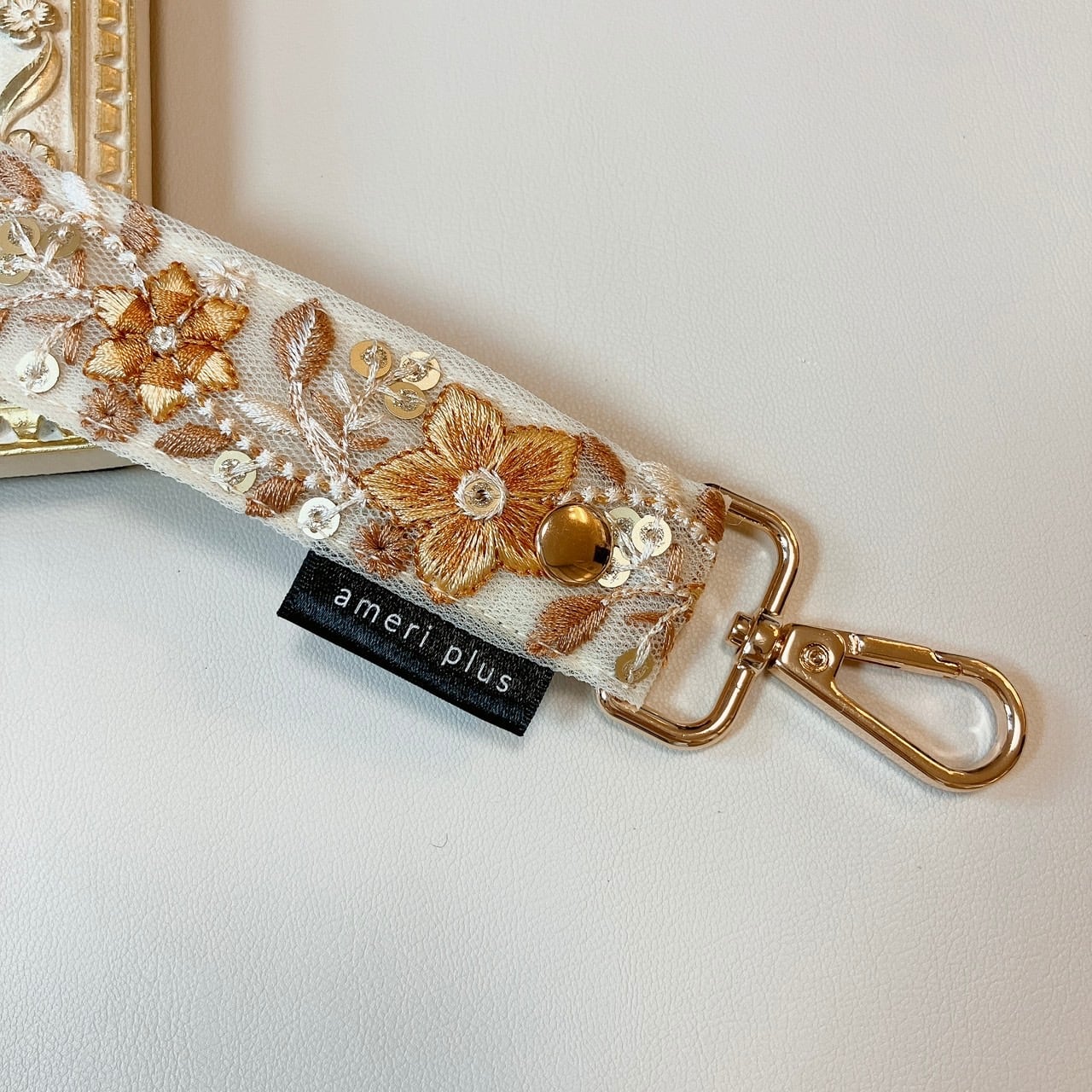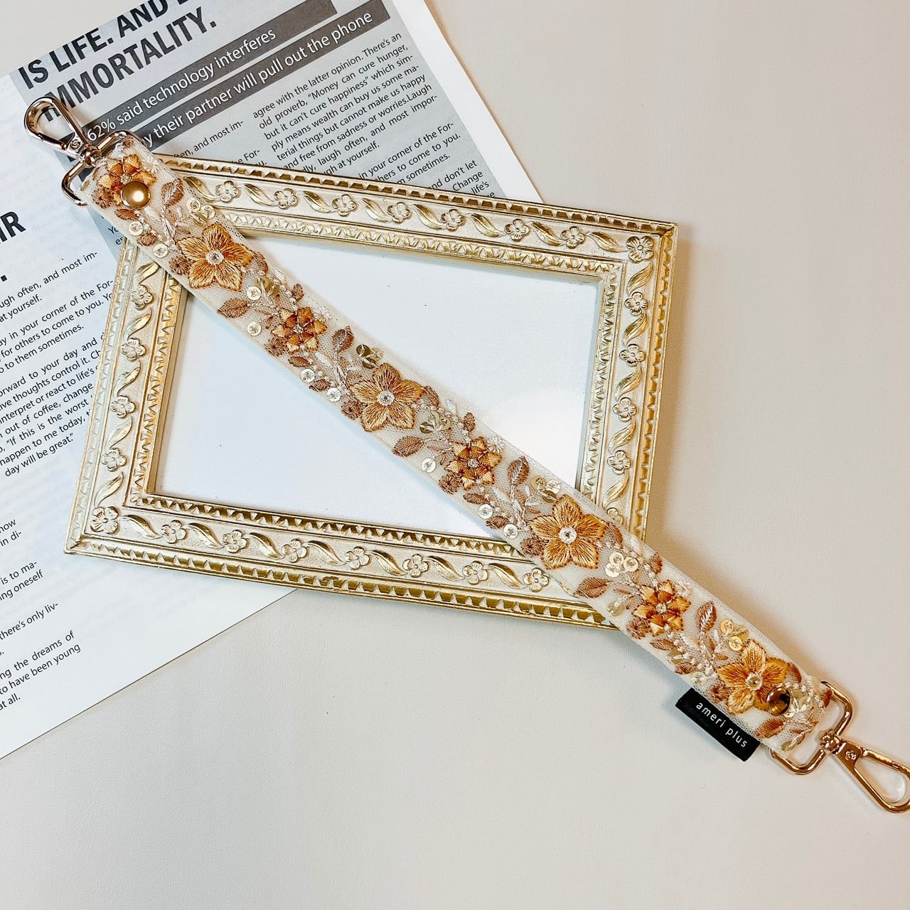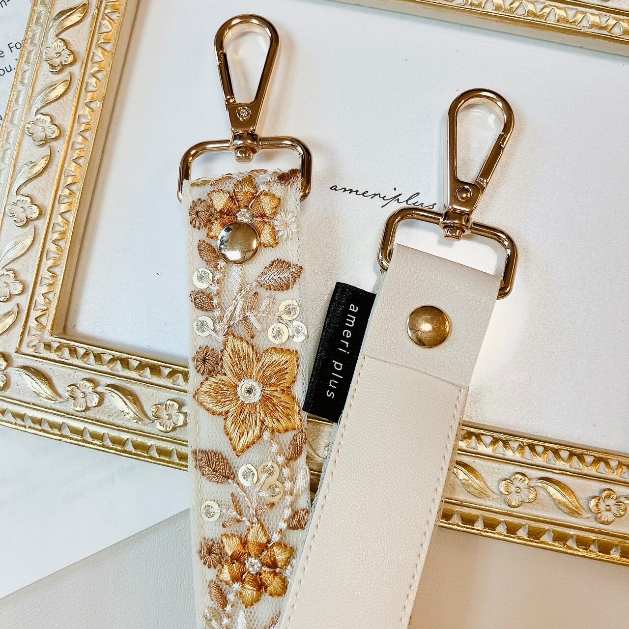 【再販】manywayハンドストラップ《インド刺繍×フェイクレザー》シャンパンベージュ