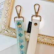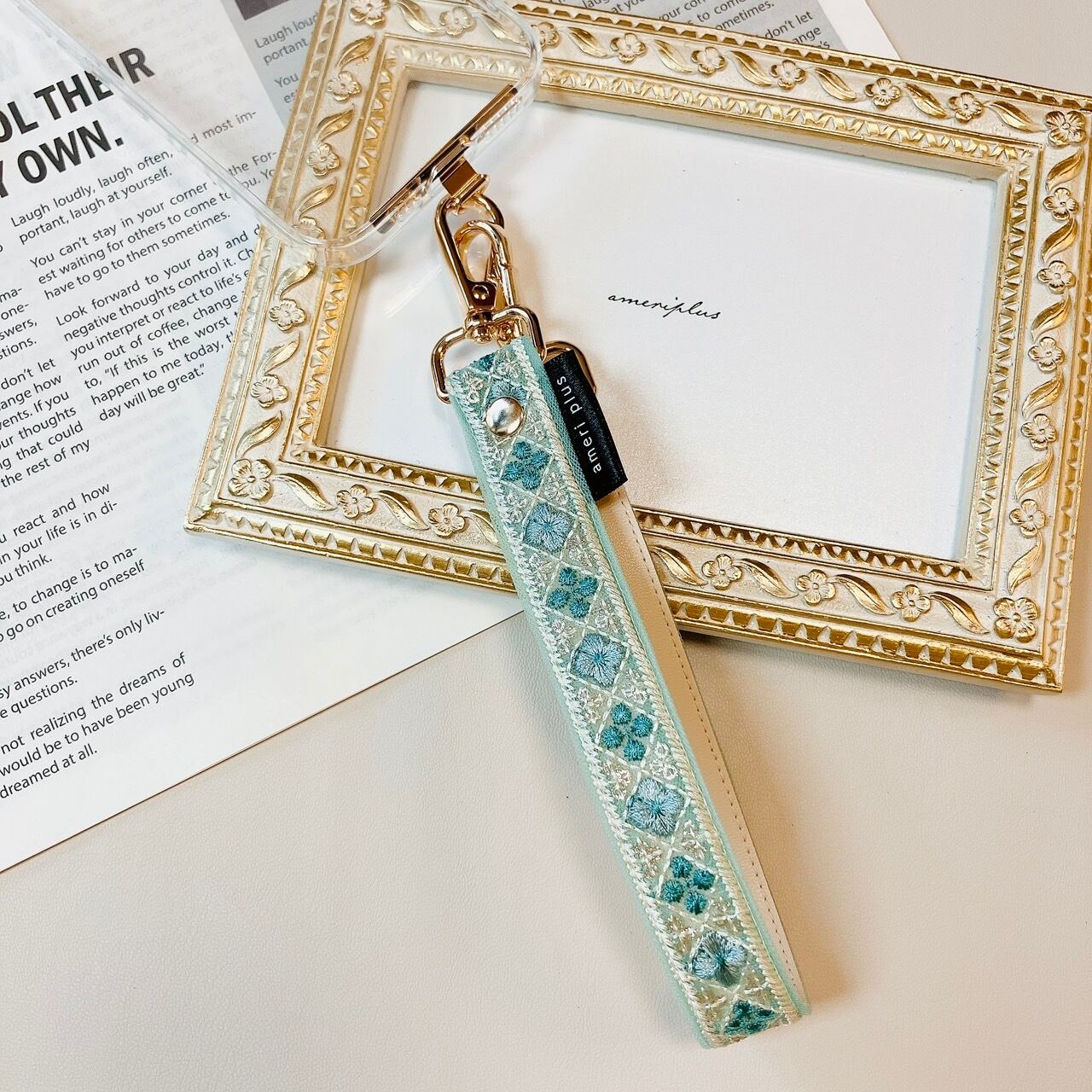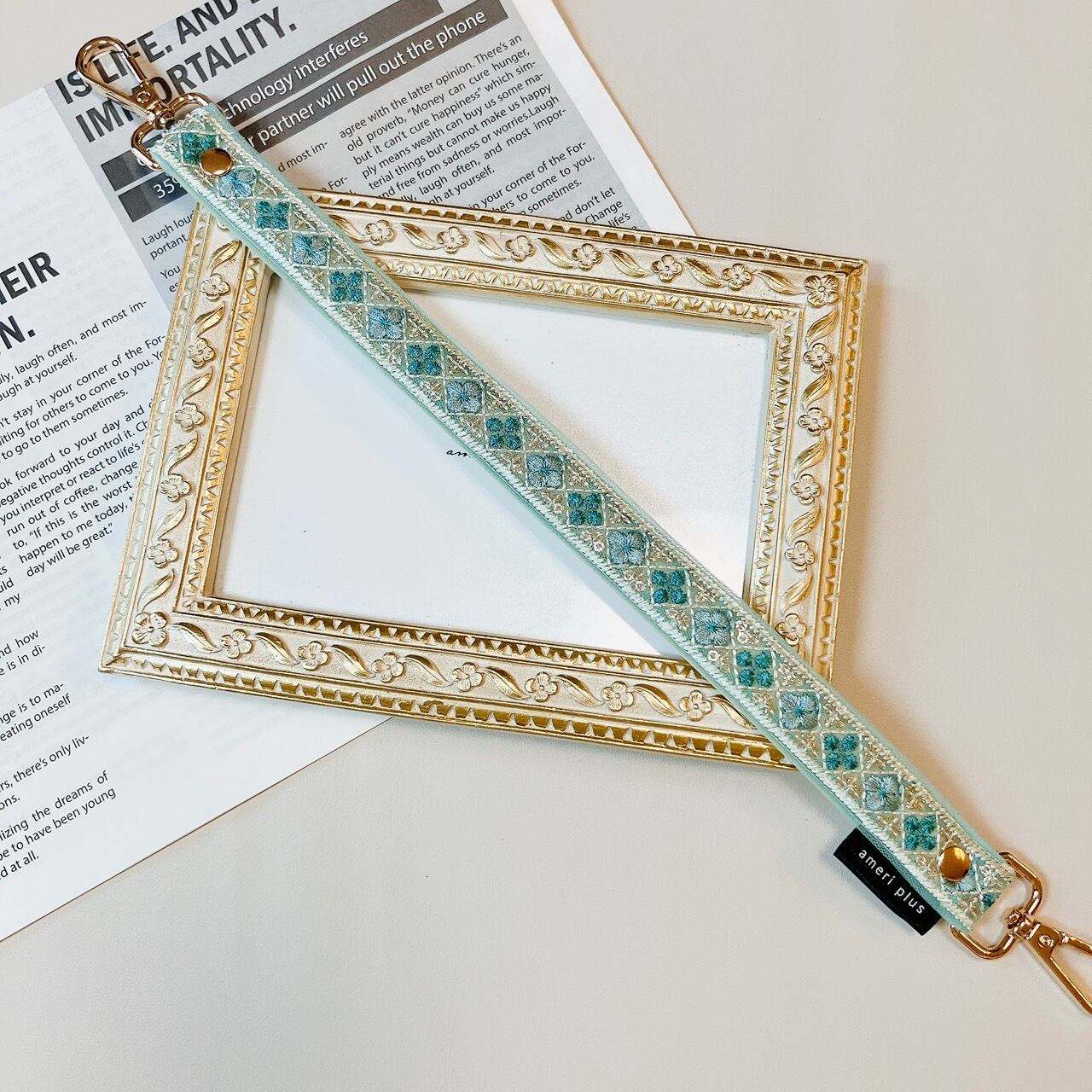 manywayハンドストラップ《インド刺繍×フェイクレザー》ターコイズグリーン