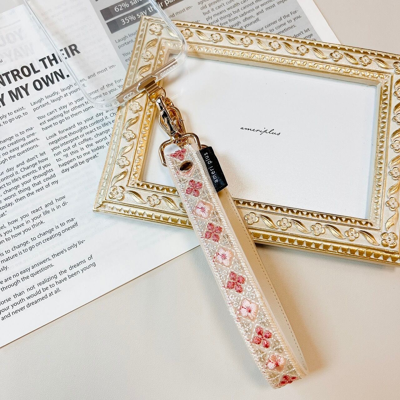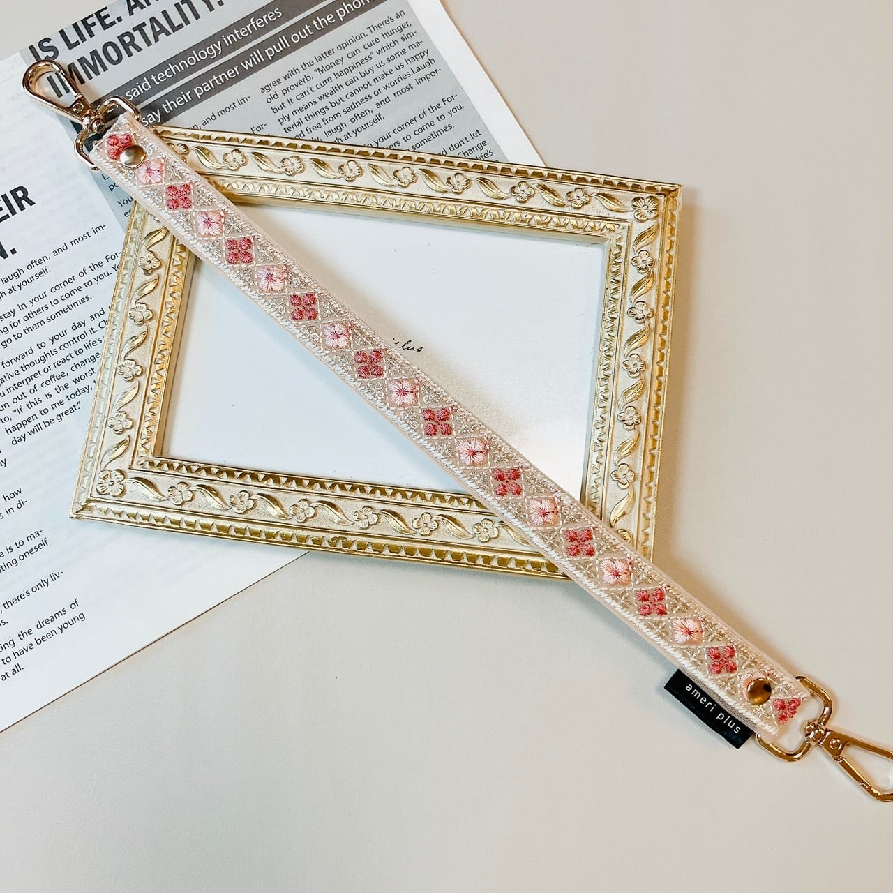 manywayハンドストラップ《インド刺繍×フェイクレザー》ピンク