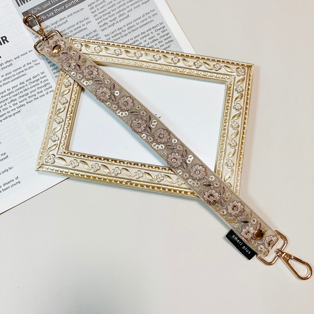 【再販】manywayハンドストラップ《インド刺繍×フェイクレザー》ライトブラウン