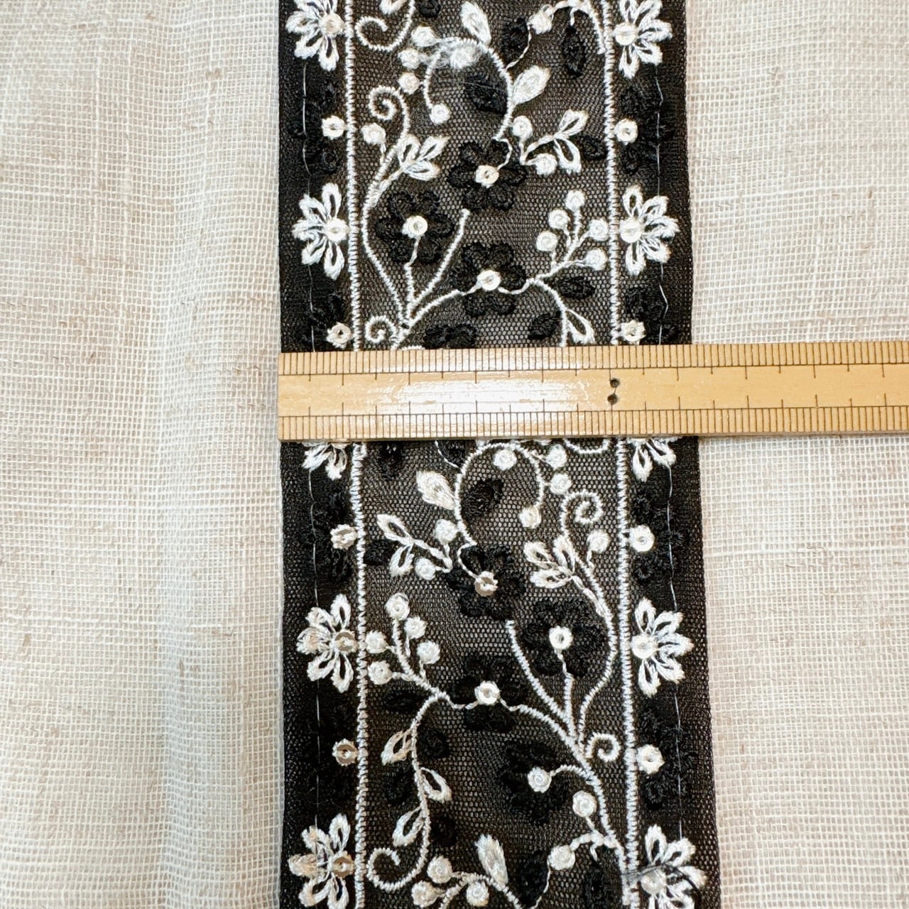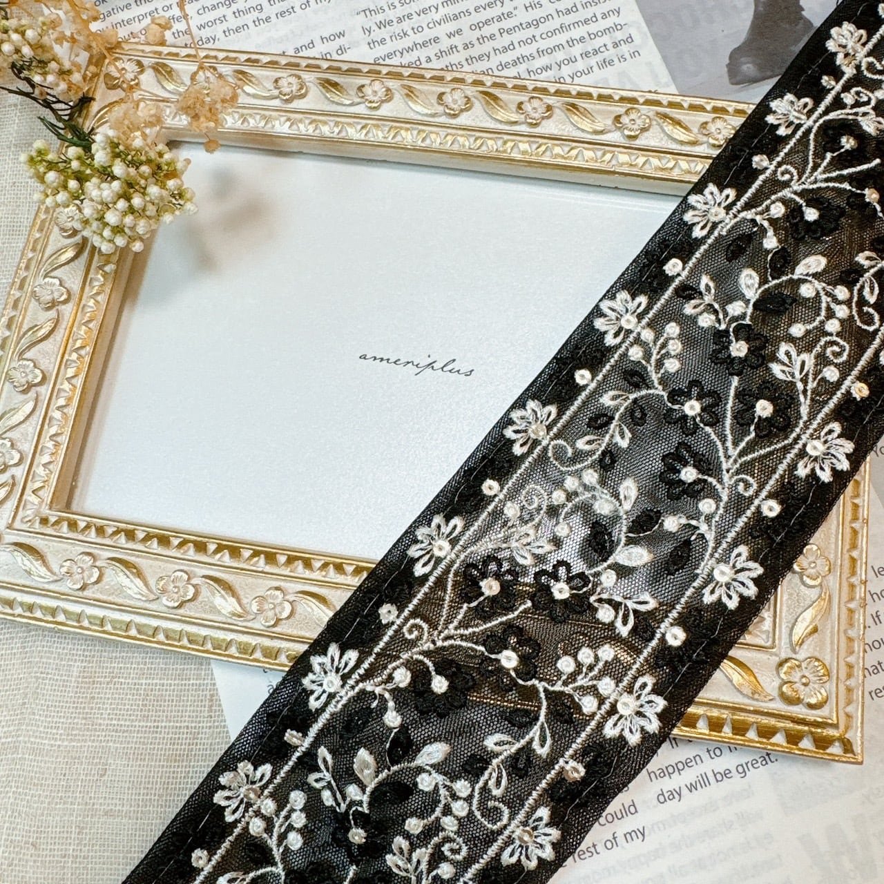 フルールレースリボン [ミッドナイト]インド刺繍リボン A_0337