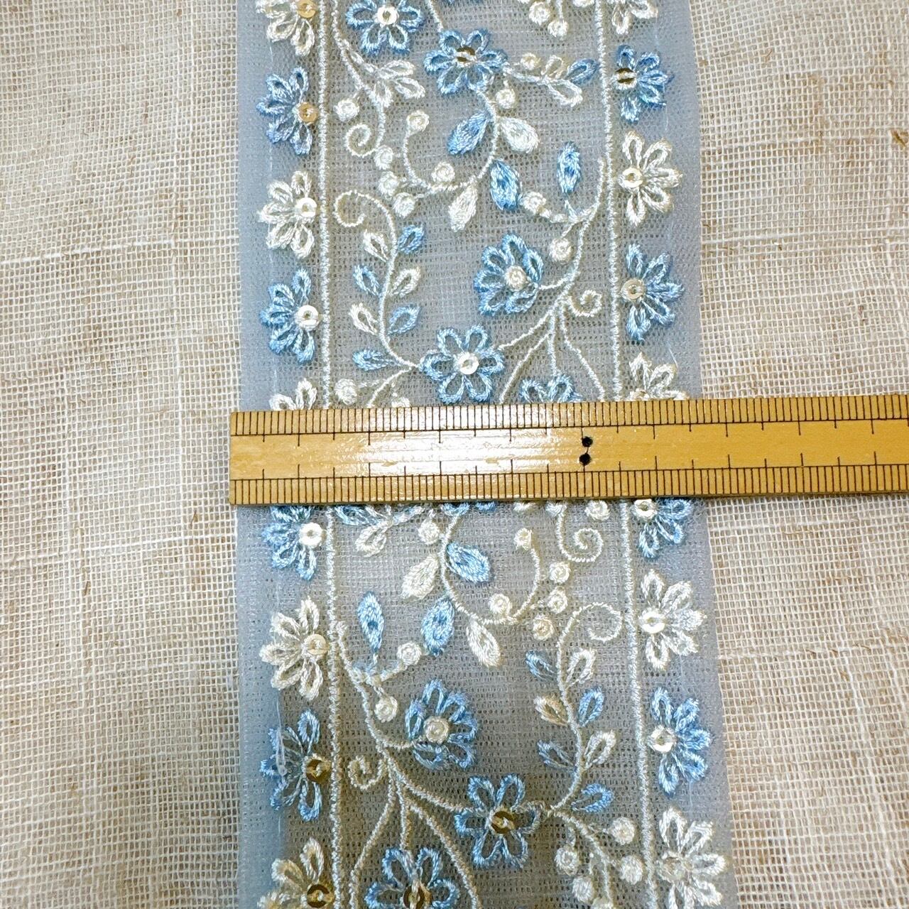 フルールレースリボン [アイスブルー]インド刺繍リボン A_0338
