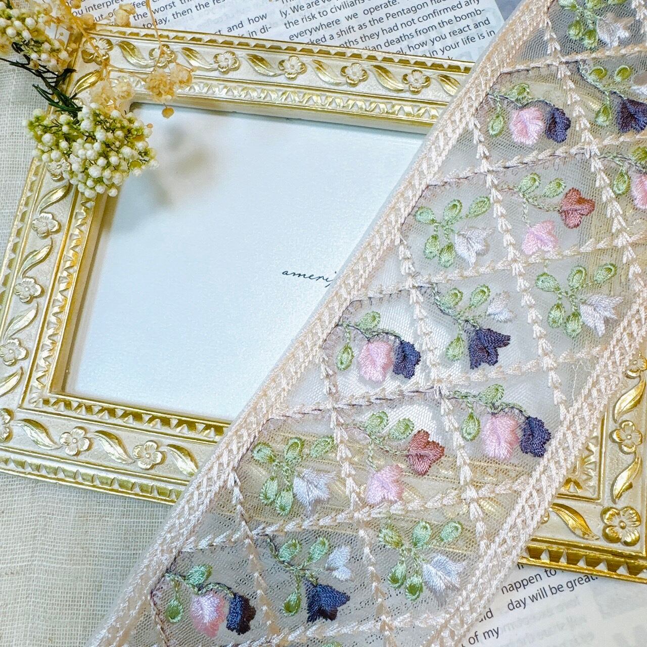 インドから直輸入した、カラフルで繊細なミシン刺繍が魅力のリボンです。