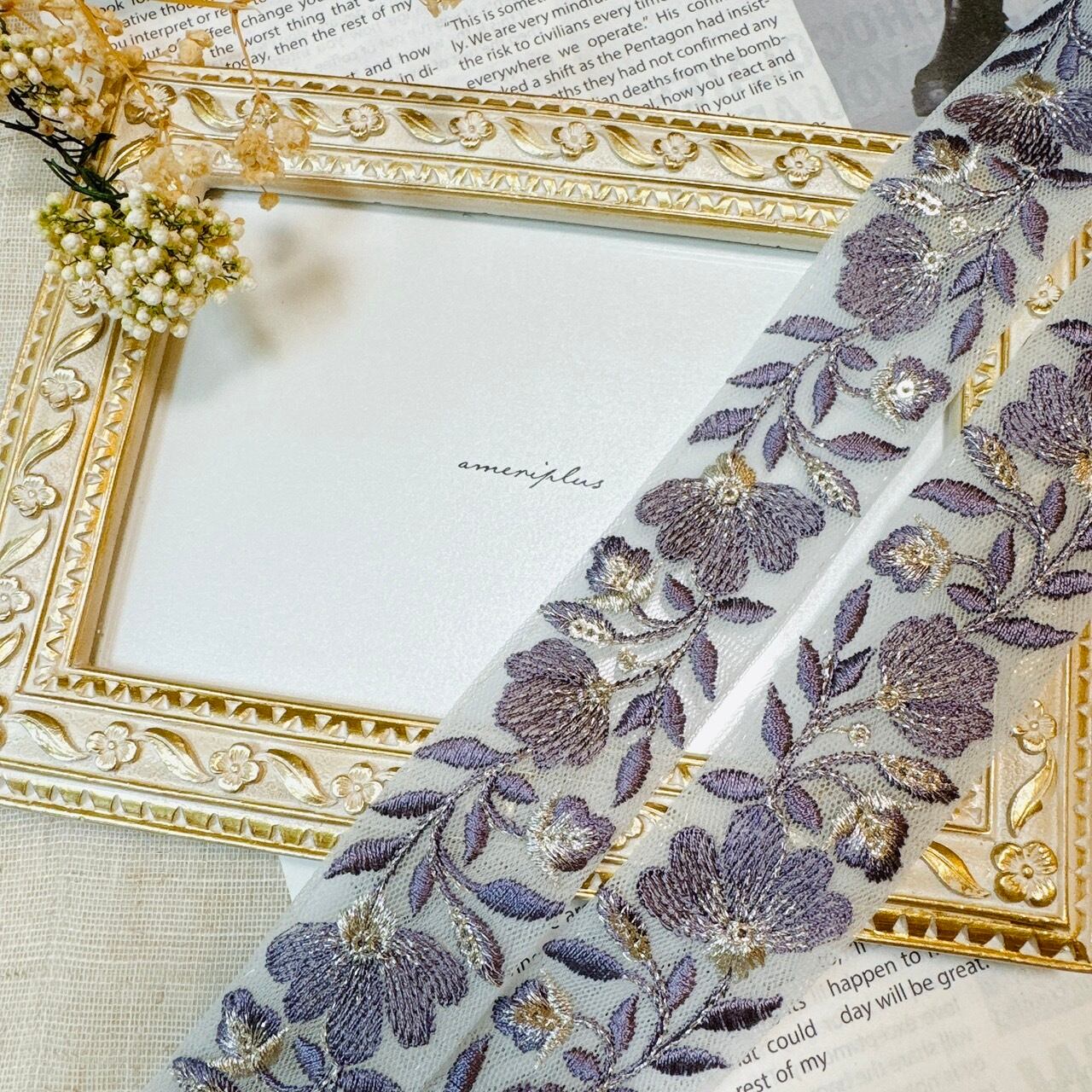 フルールエレガンスリボン [ラベンダーミスト]インド刺繍リボン A_0356