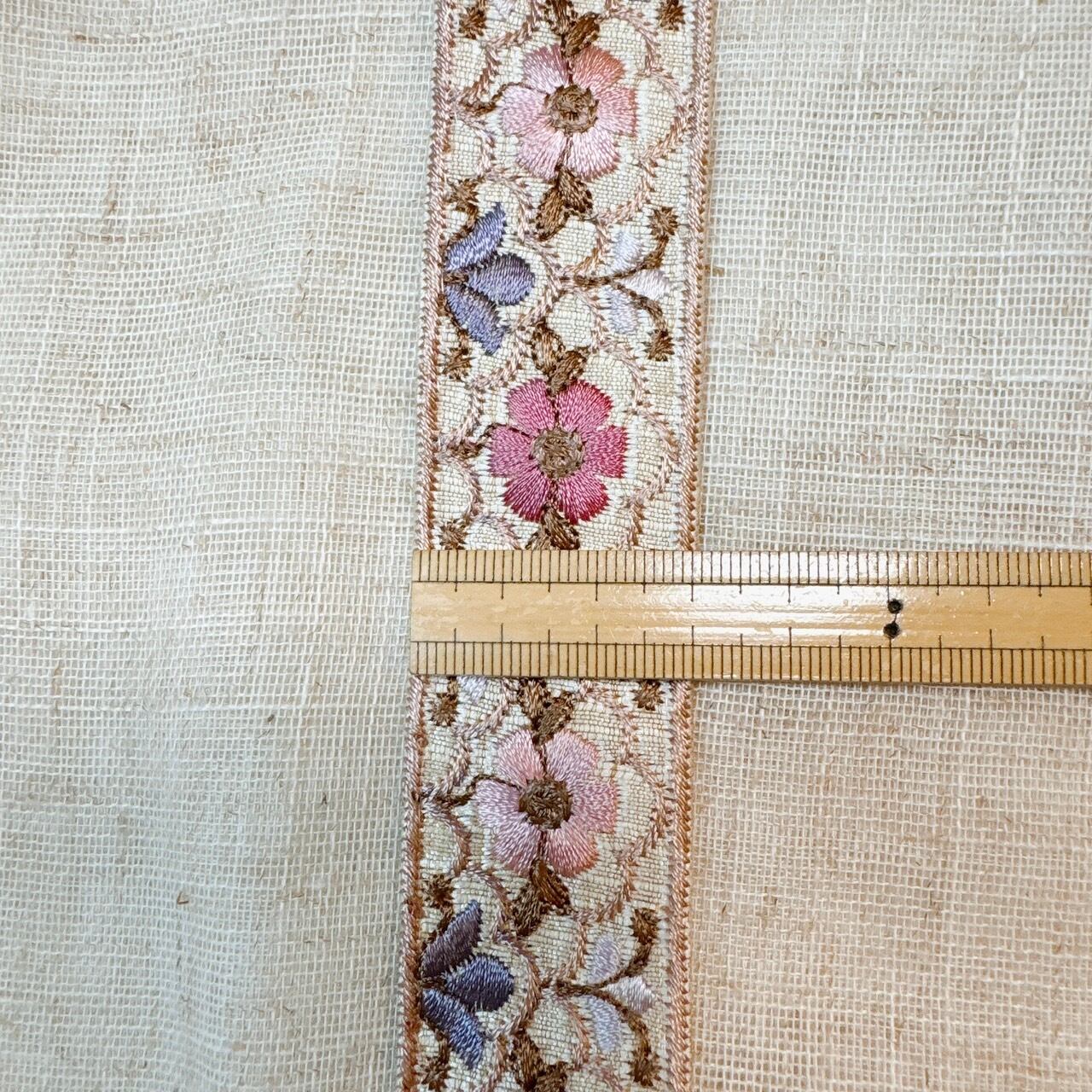 フルール・ブロカーディ リボン [シャンパンローズ]インド刺繍リボン A_0358