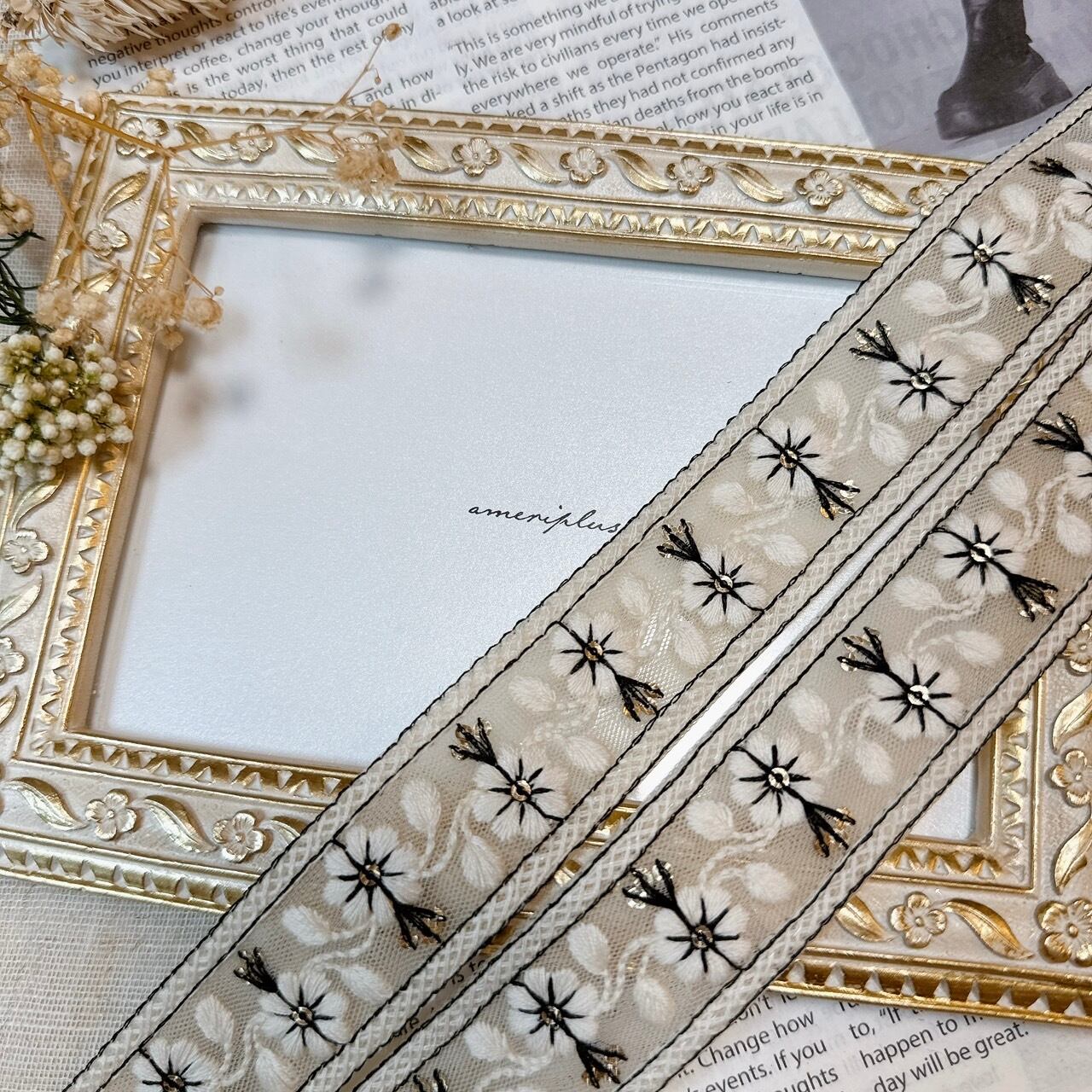 インドから直輸入した、カラフルで繊細なミシン刺繍が魅力のリボンです。