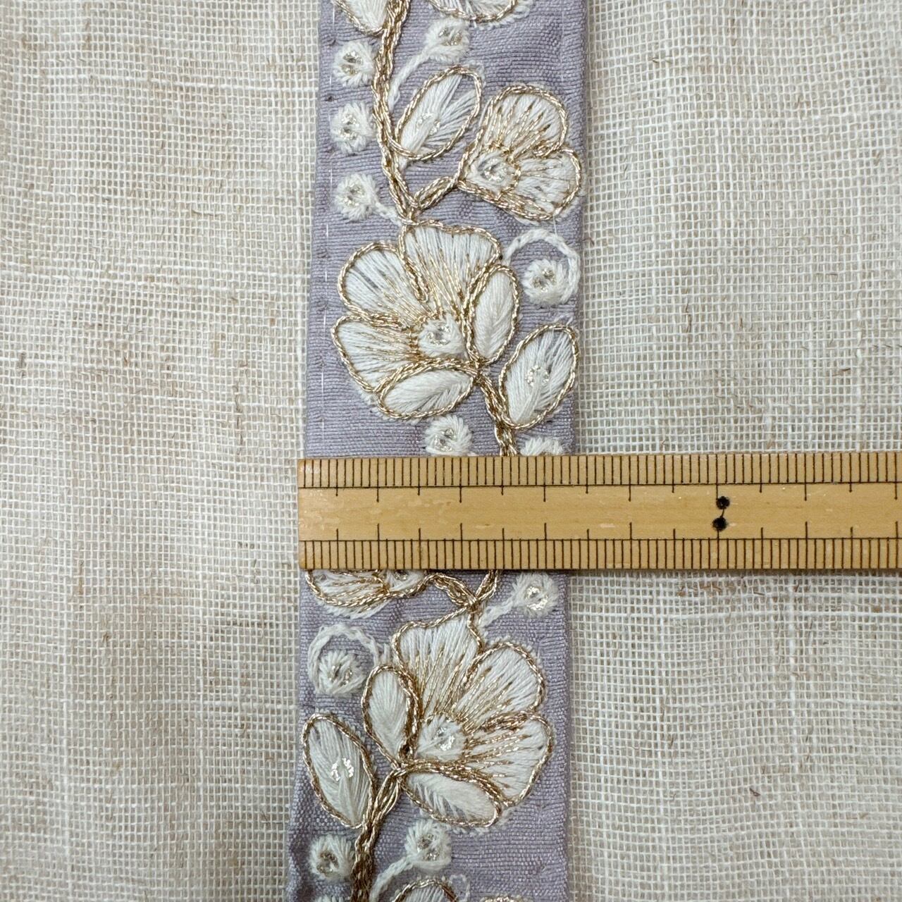 フルール・ブローディ [グレーパープル]インド刺繍リボン A_0364