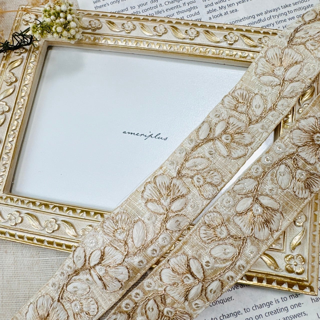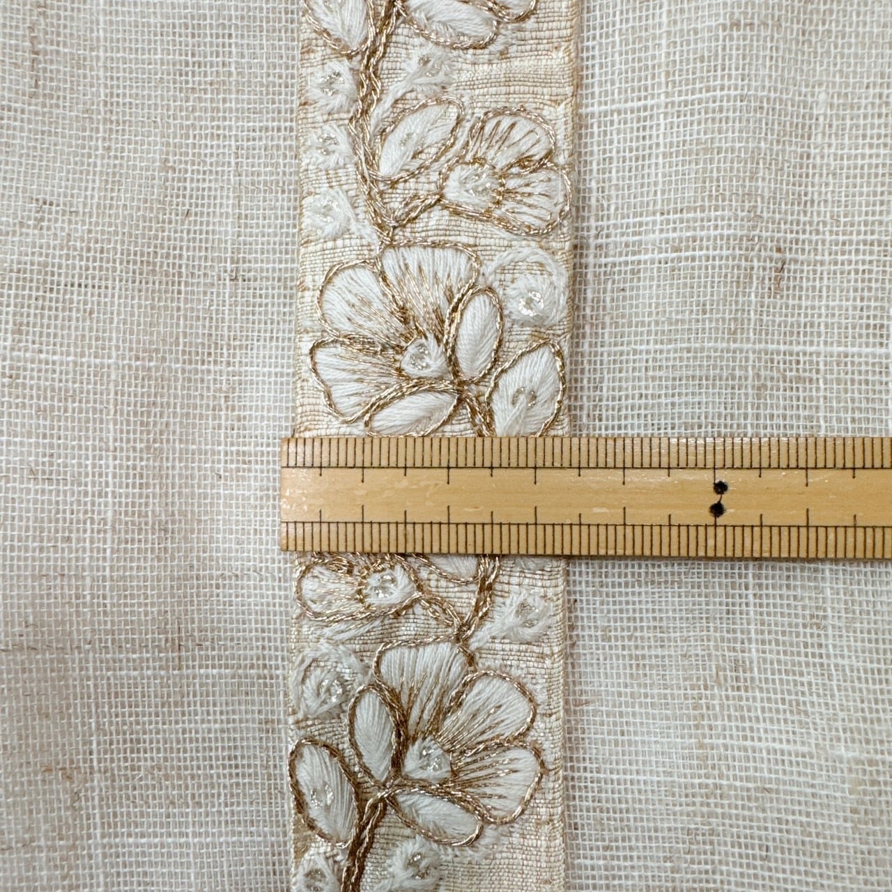 フルール・ブローディ [シャンパンベージュ]インド刺繍リボン A_0365