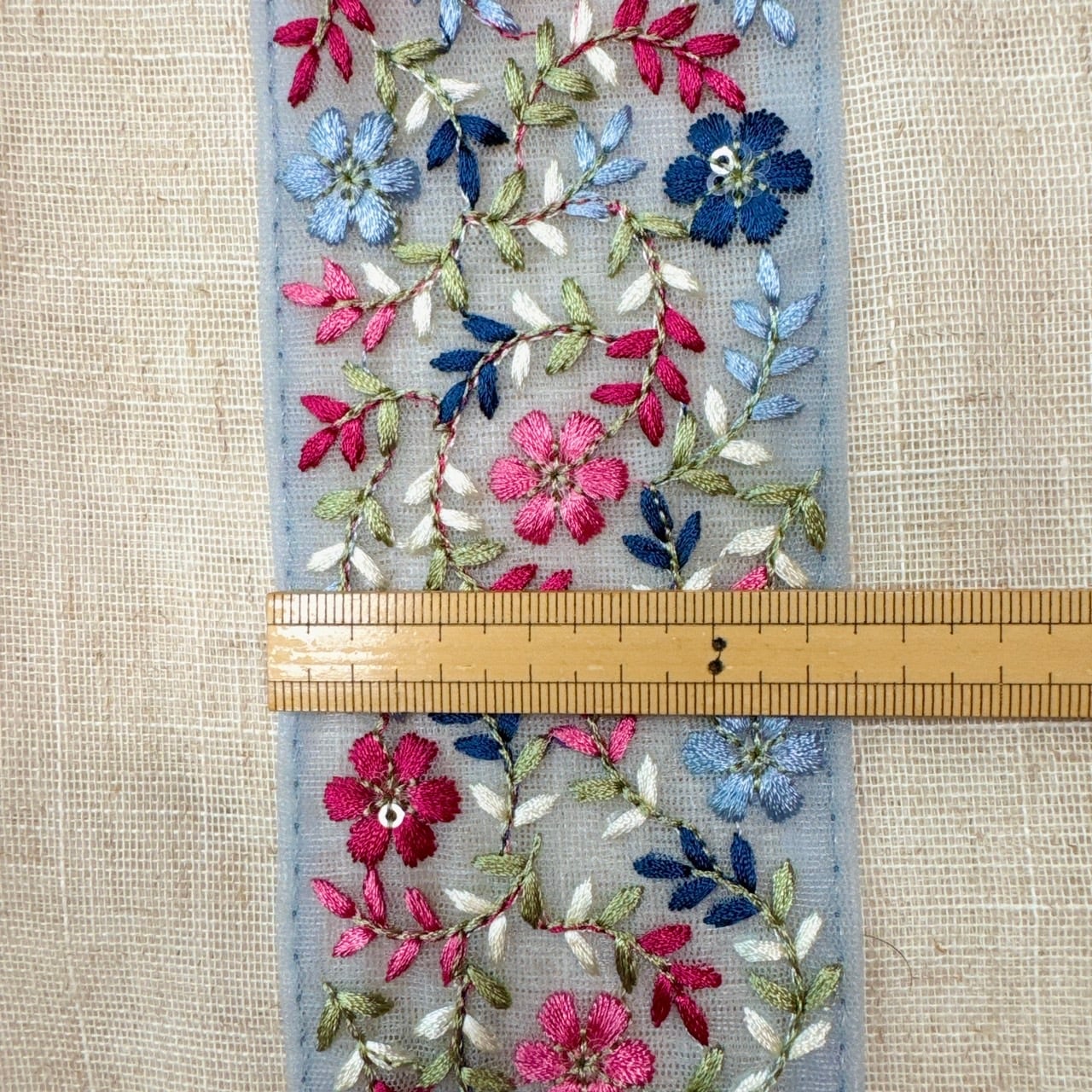 フルール・ガーデン [スカイブルー]インド刺繍リボン A_0371
