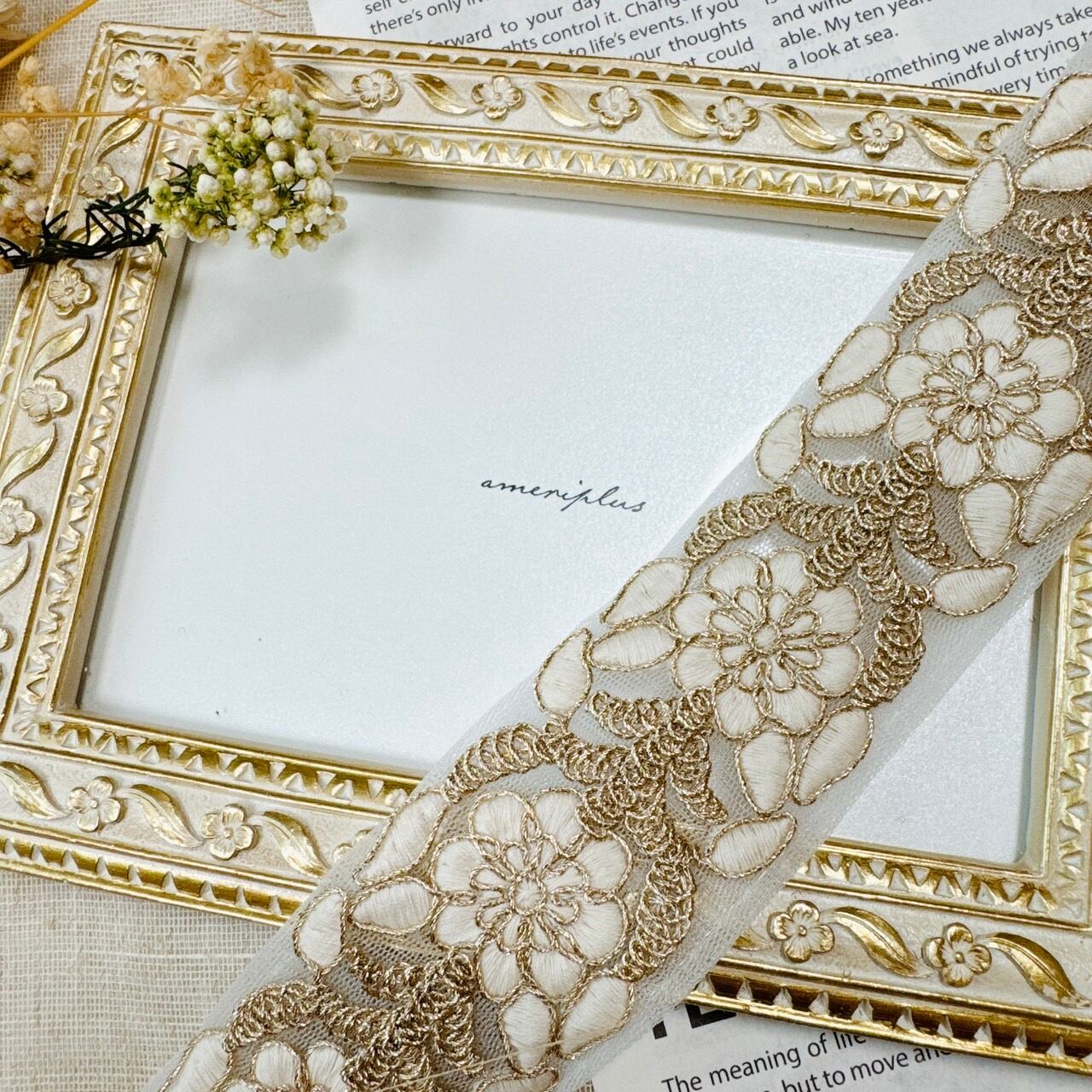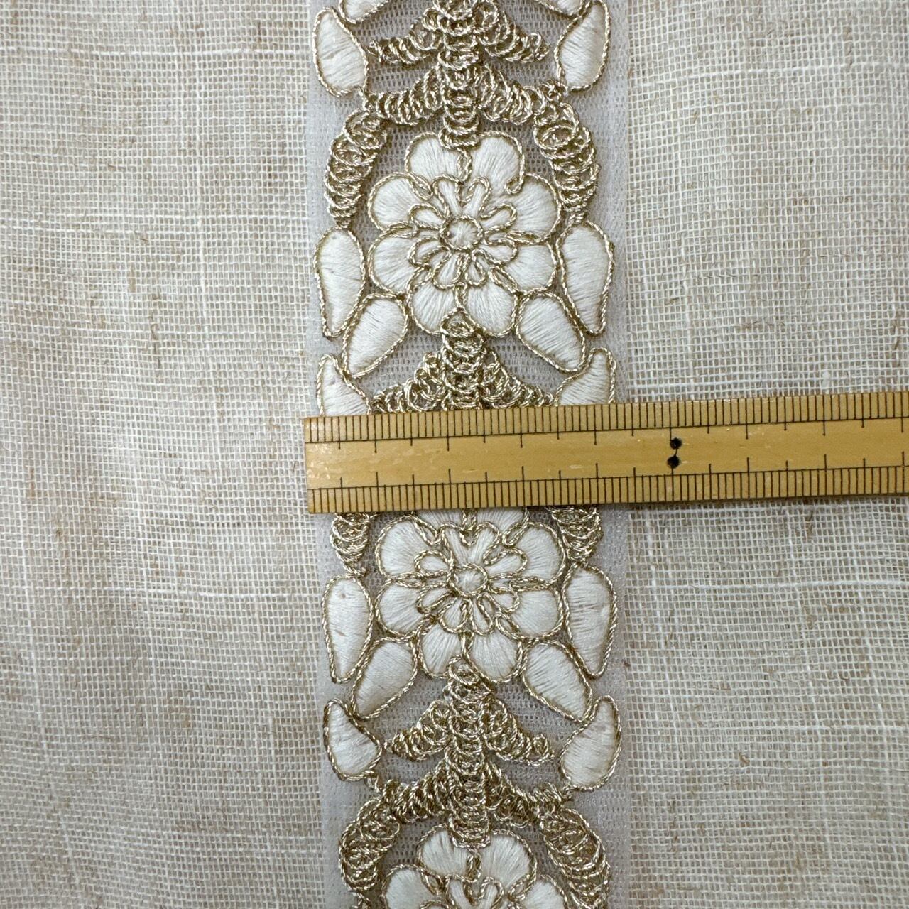 フローラルエンブロイダリーリボン [アイボリーホワイト]インド刺繍リボン A_0375