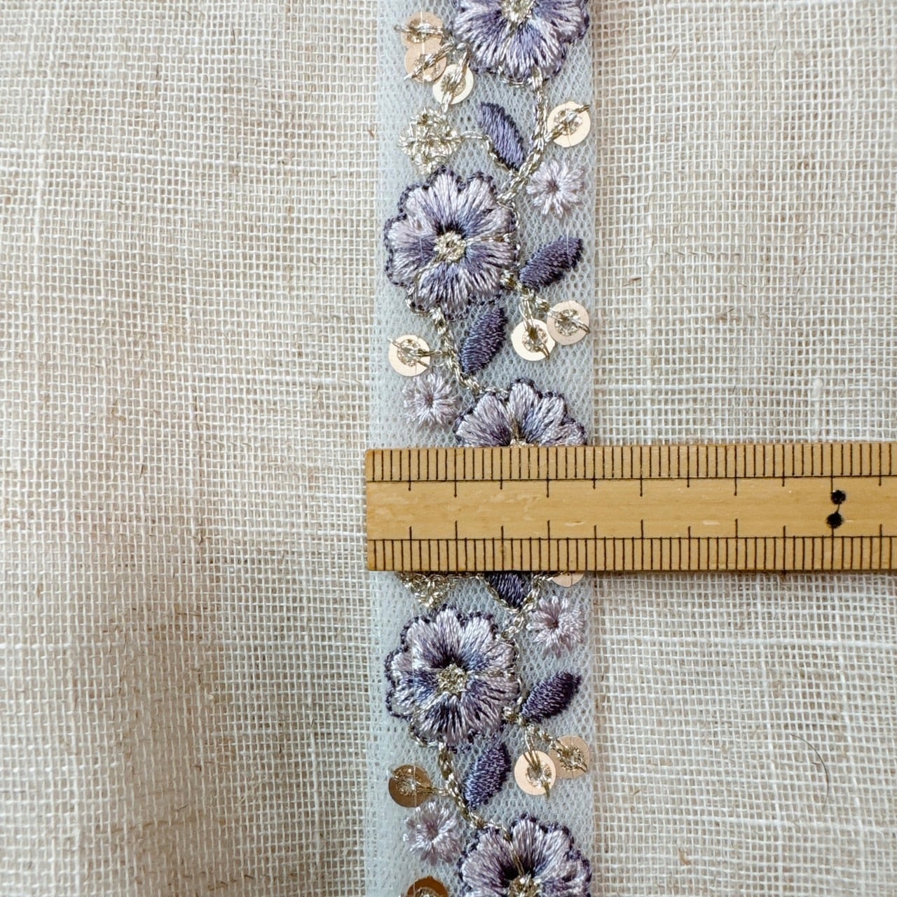 フルールグリッタートリム [ブルーグレイ]インド刺繍リボン A_0378