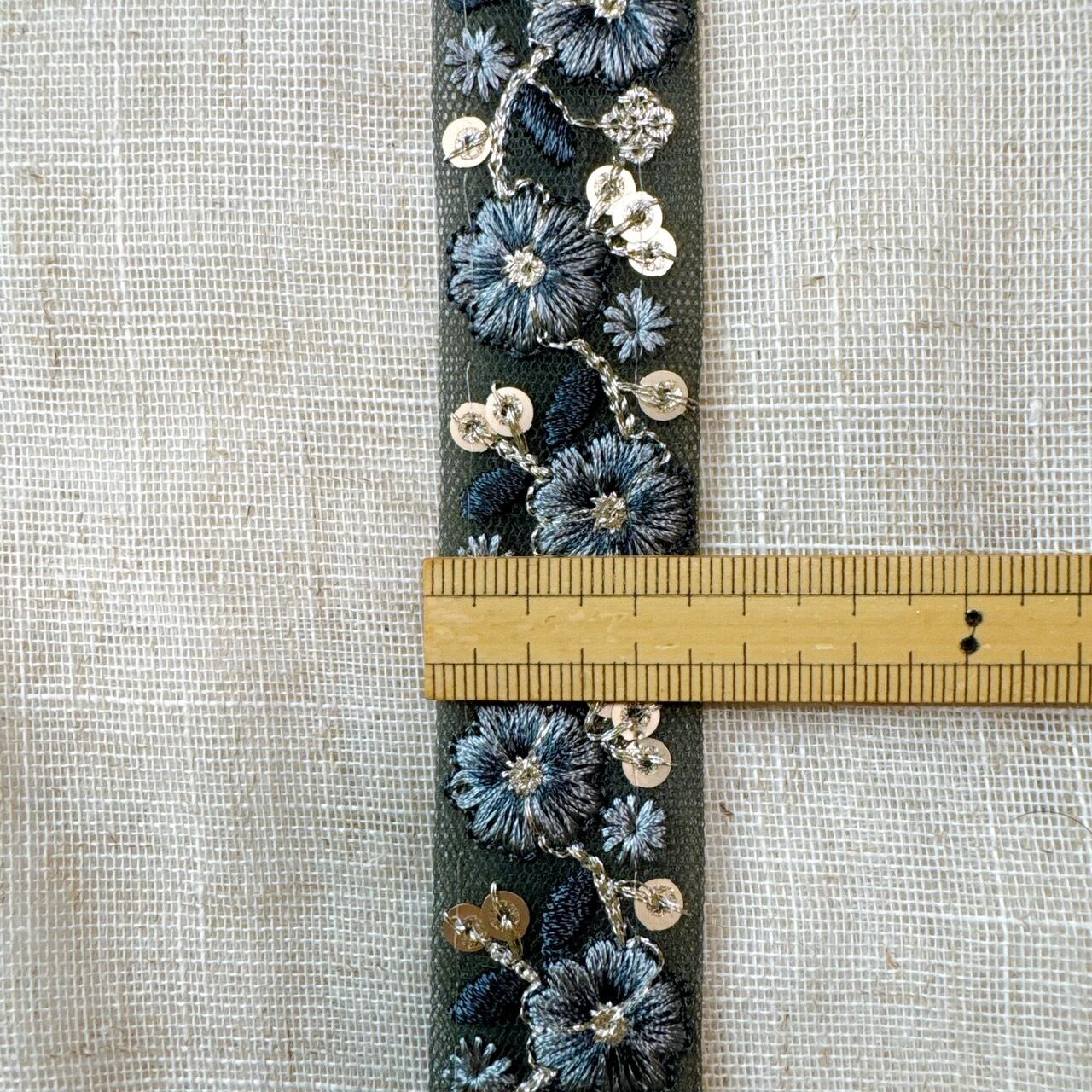 フルールグリッタートリム [チャコールブルーム]インド刺繍リボン A_0380