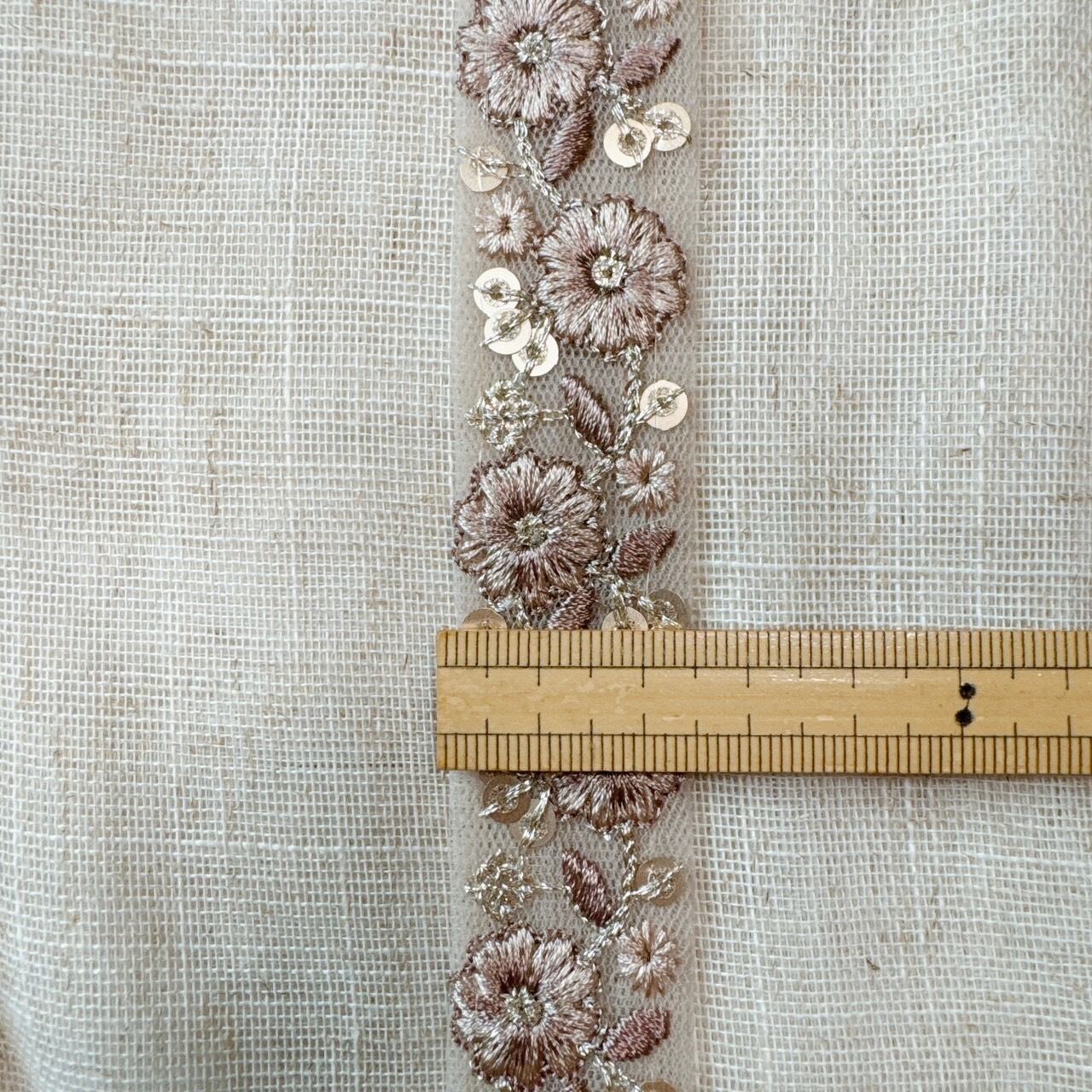 フルールグリッタートリム [ダスティーブラウン]インド刺繍リボン A_0382