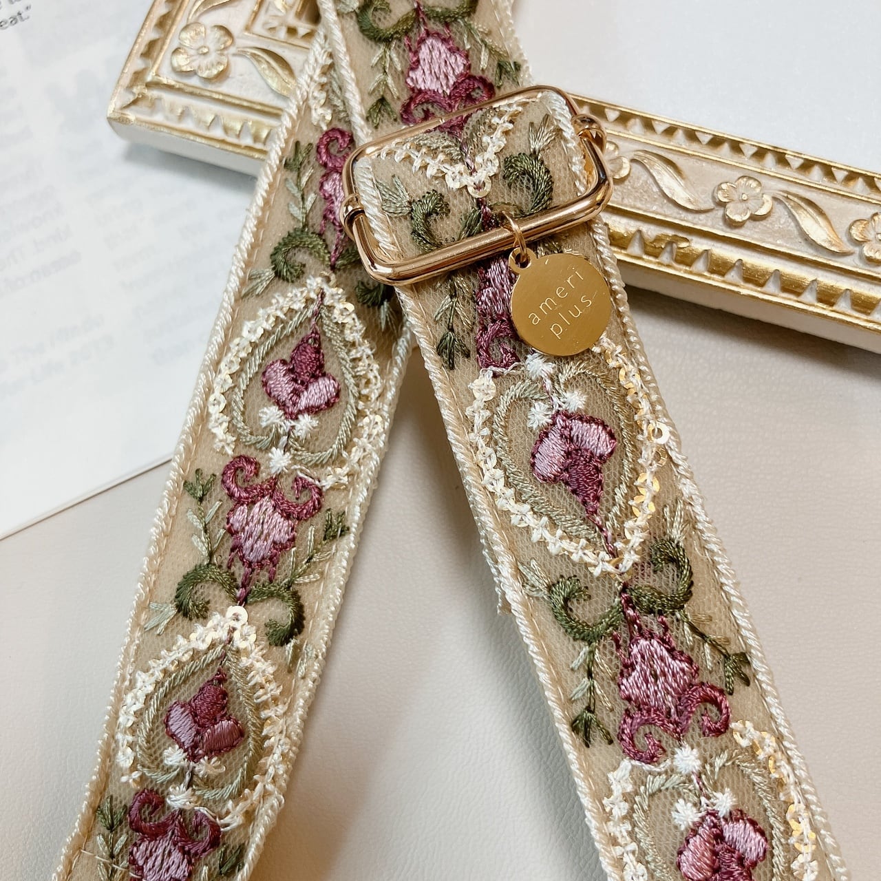 一点一点、丁寧に仕上げたインド刺繍リボンのショルダーストラップができました!
