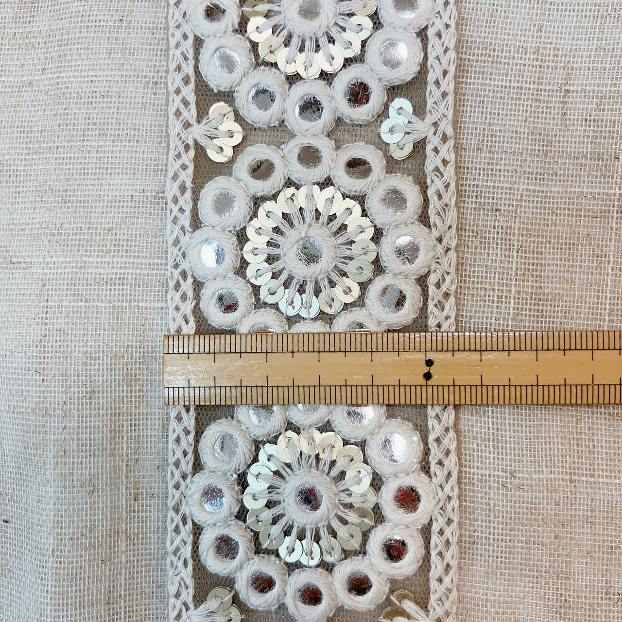 ルミエールサークルリボン [モカホワイト]インド刺繍リボン A_0385