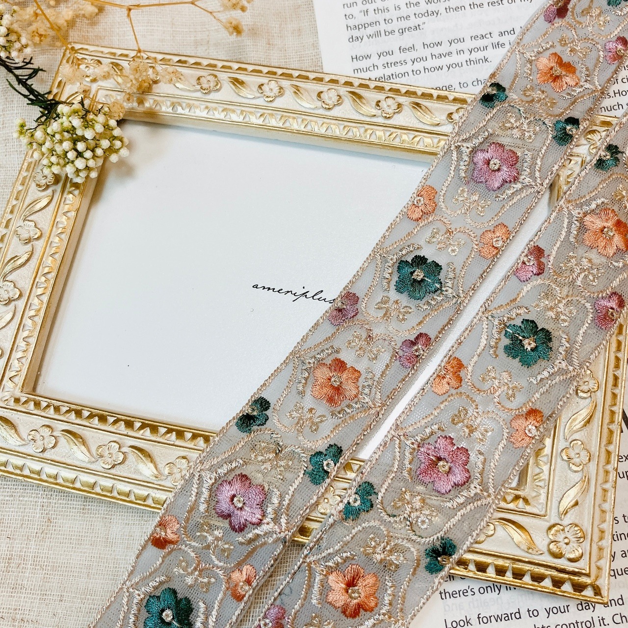 インドから直輸入した、カラフルで繊細なミシン刺繍が魅力のリボンです。
