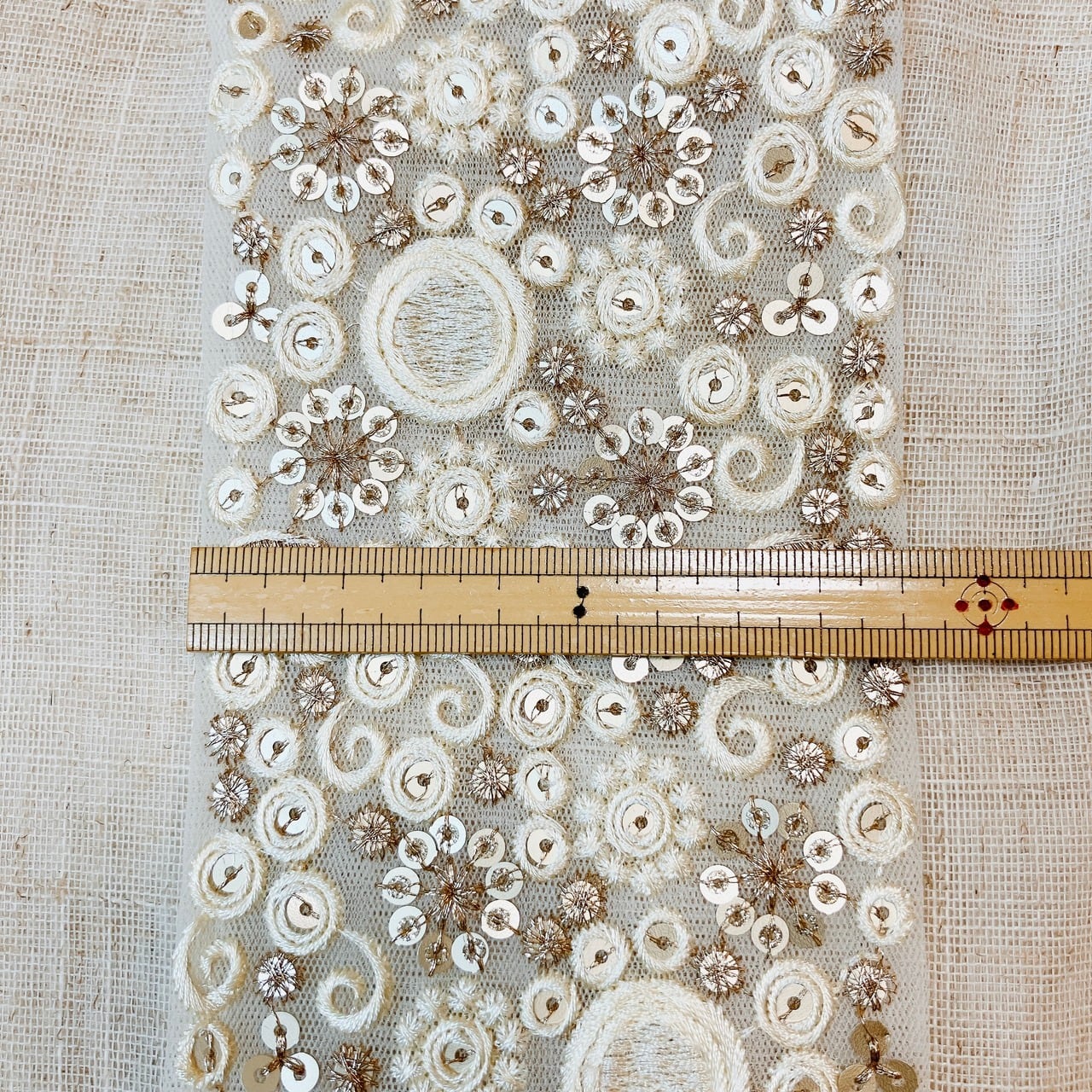 スパークルサークルリボン [シャンパンゴールド]インド刺繍リボン A_0404