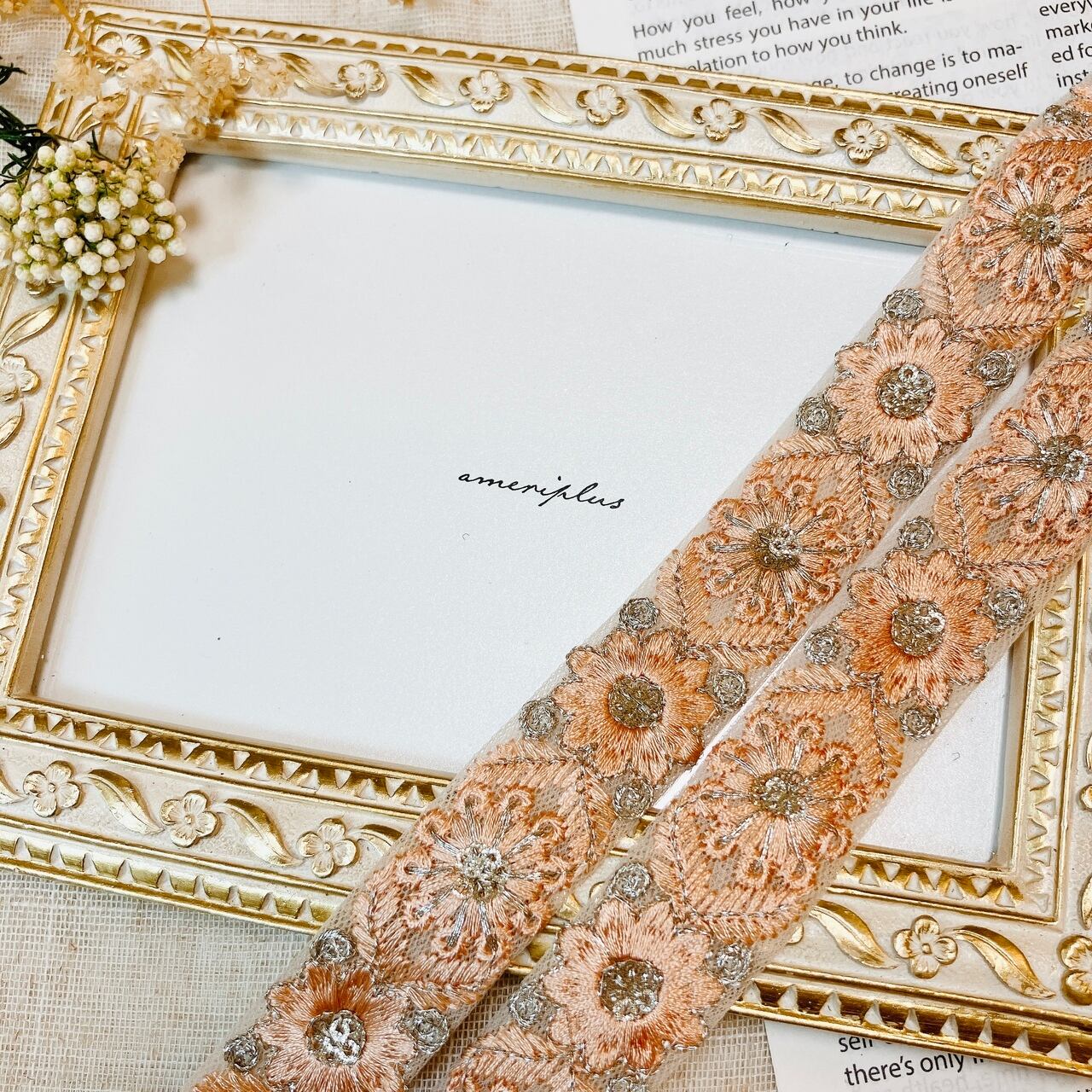 フルールサンフラワー [コーラルピンク]インド刺繍リボン A_0407