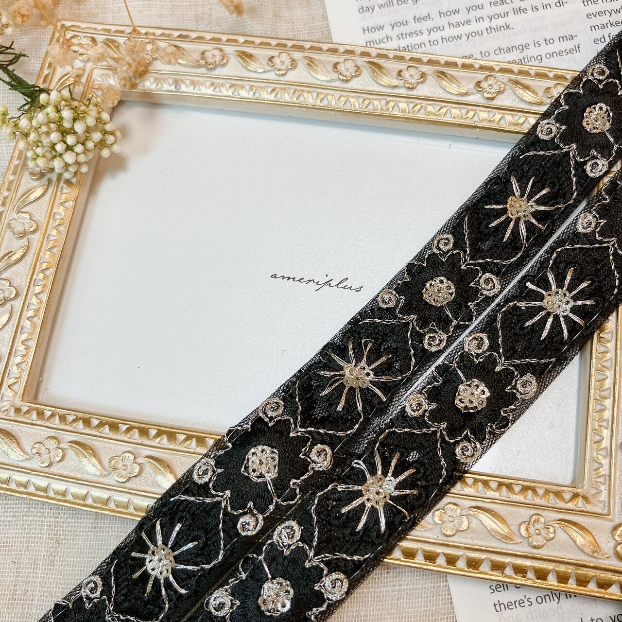 フルールサンフラワー [ブラック]インド刺繍リボン A_0412