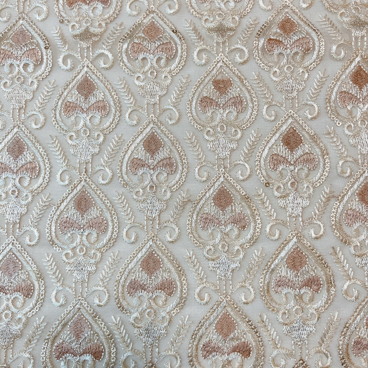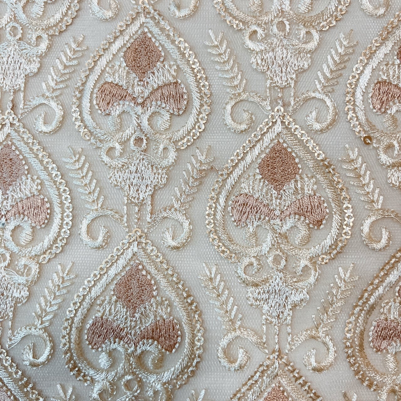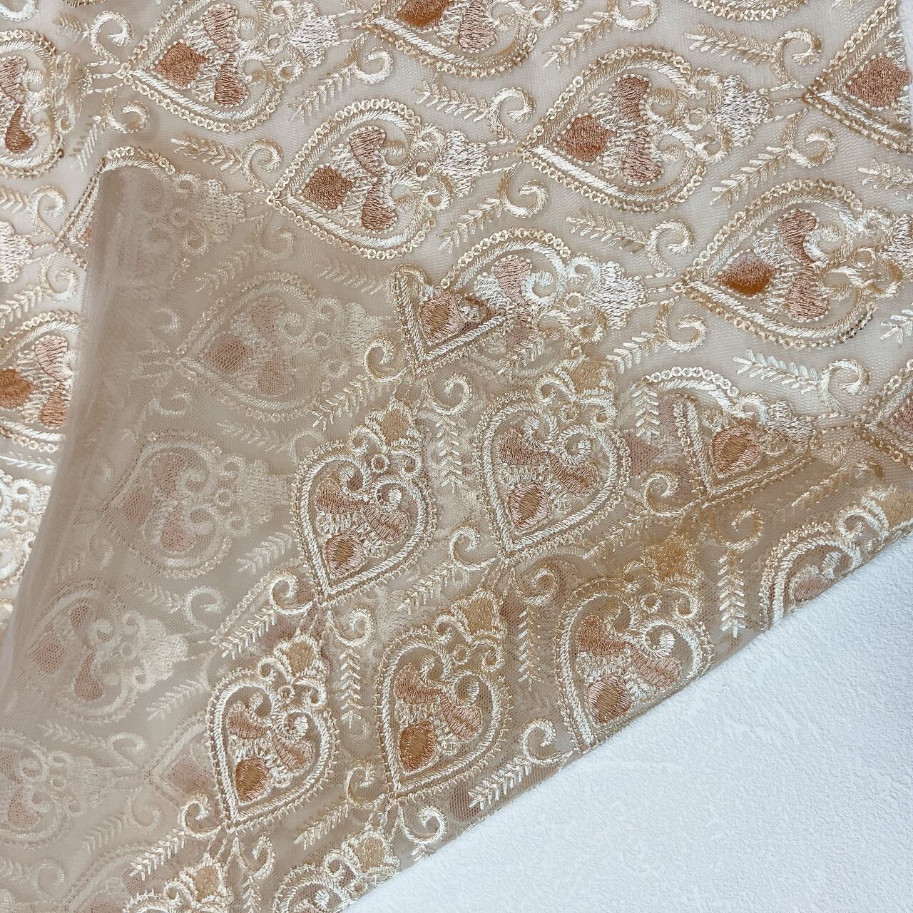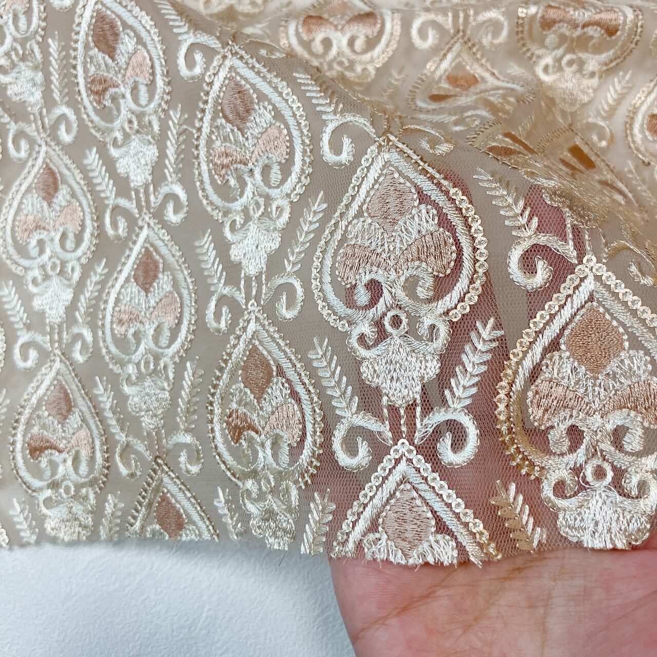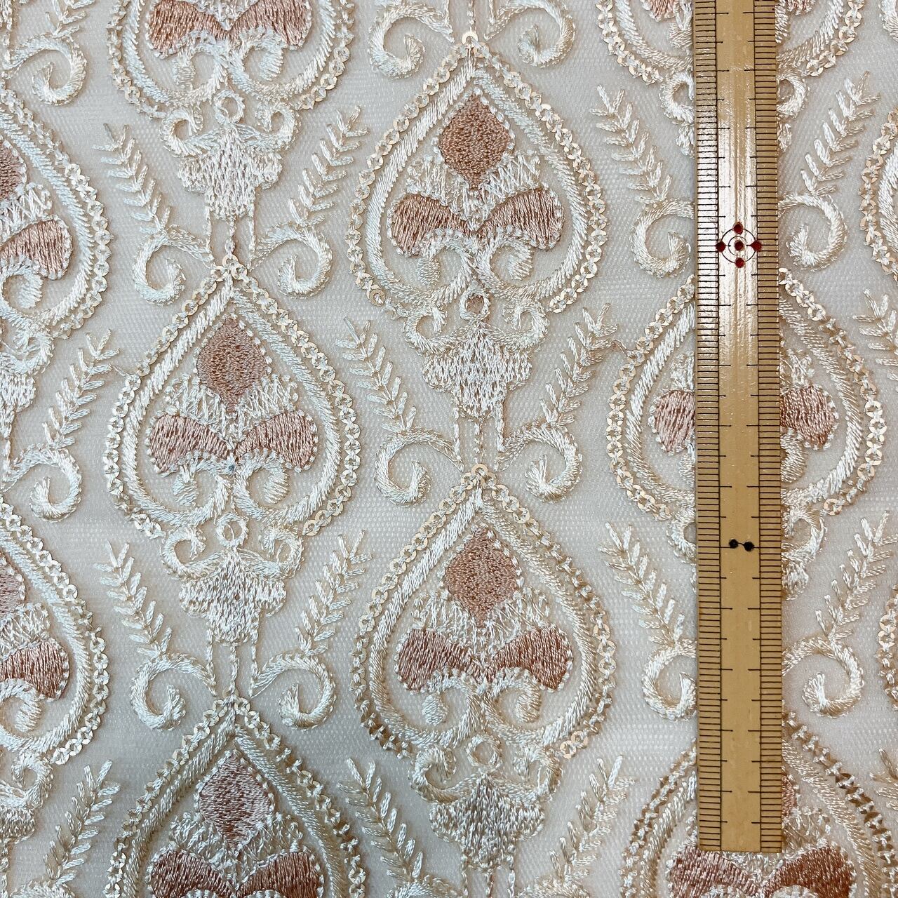 ロイヤルペイズリー刺繍チュール [シャンパンピンク]インド刺繍生地 D_0005