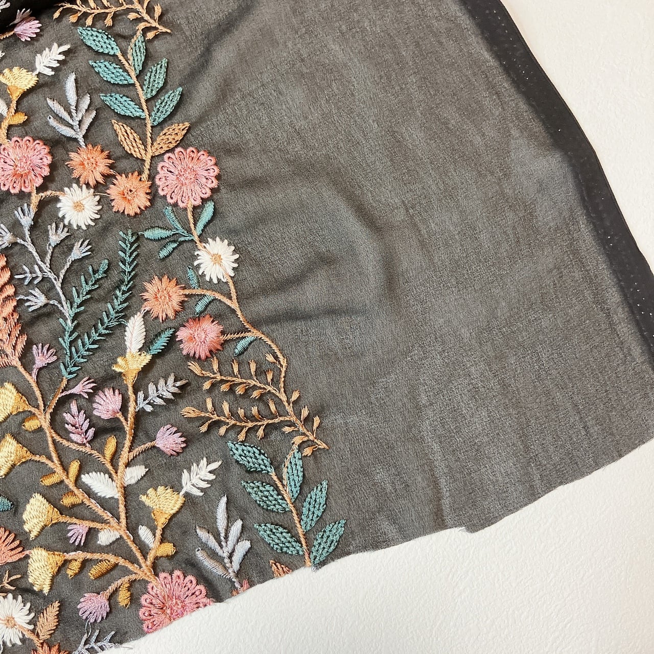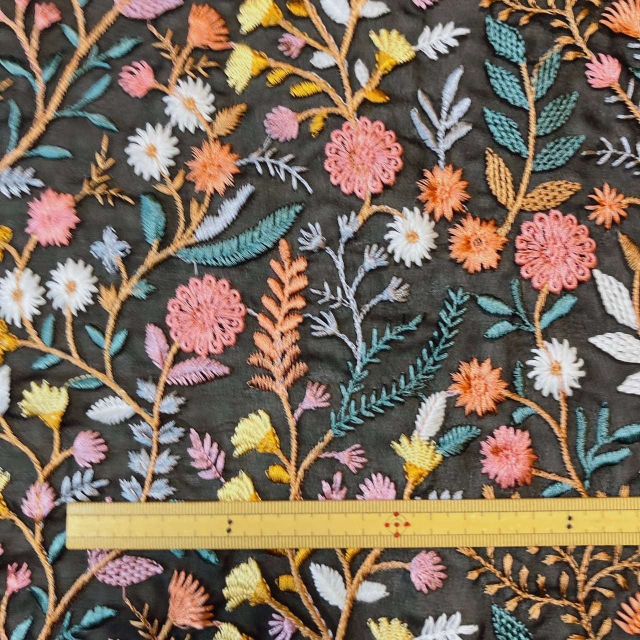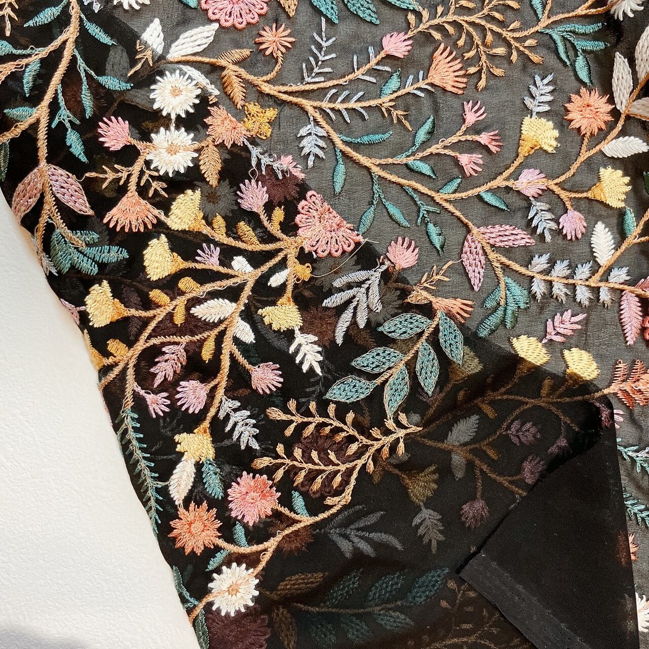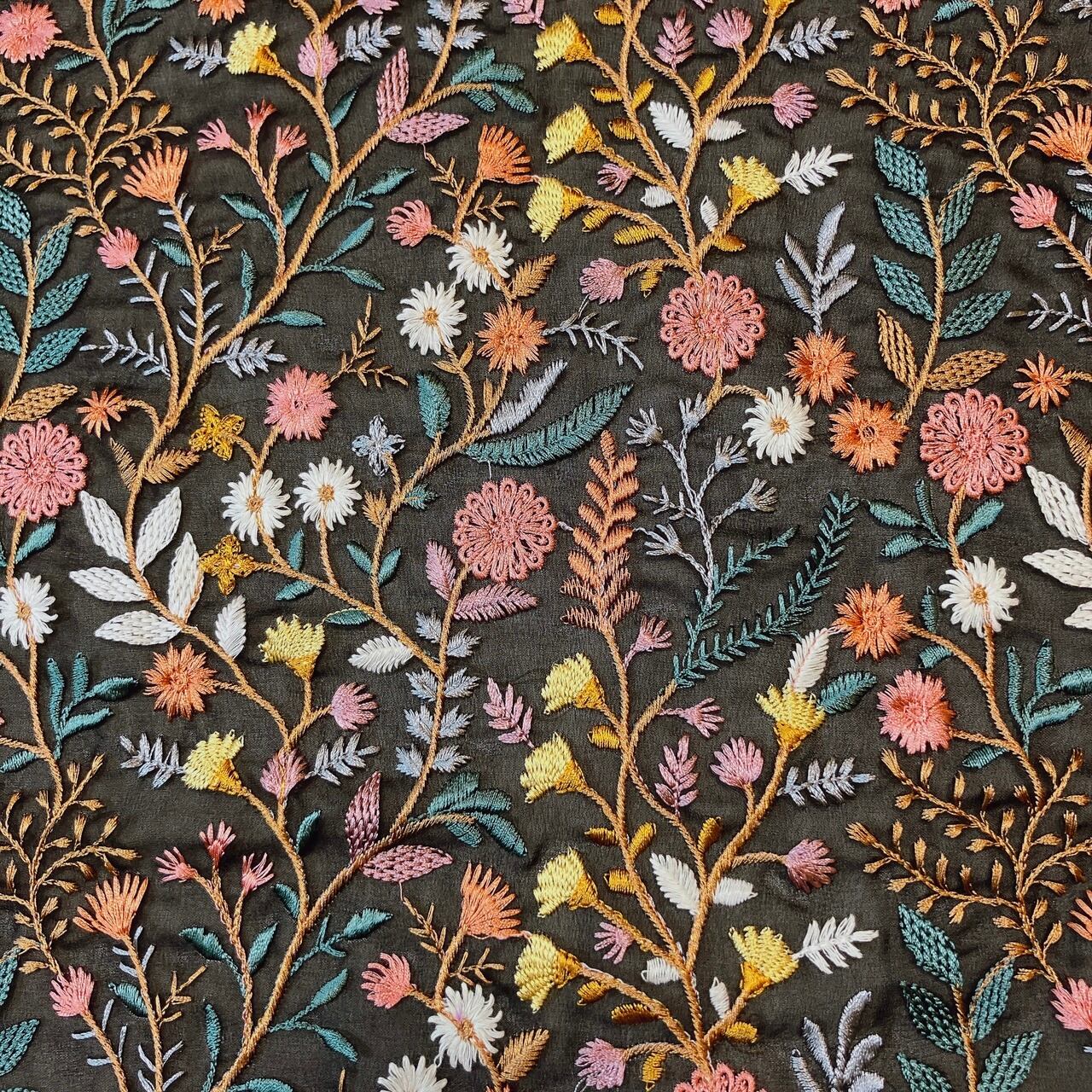 フェアリーブロッサム [ブラック]インド刺繍生地 D_0010
