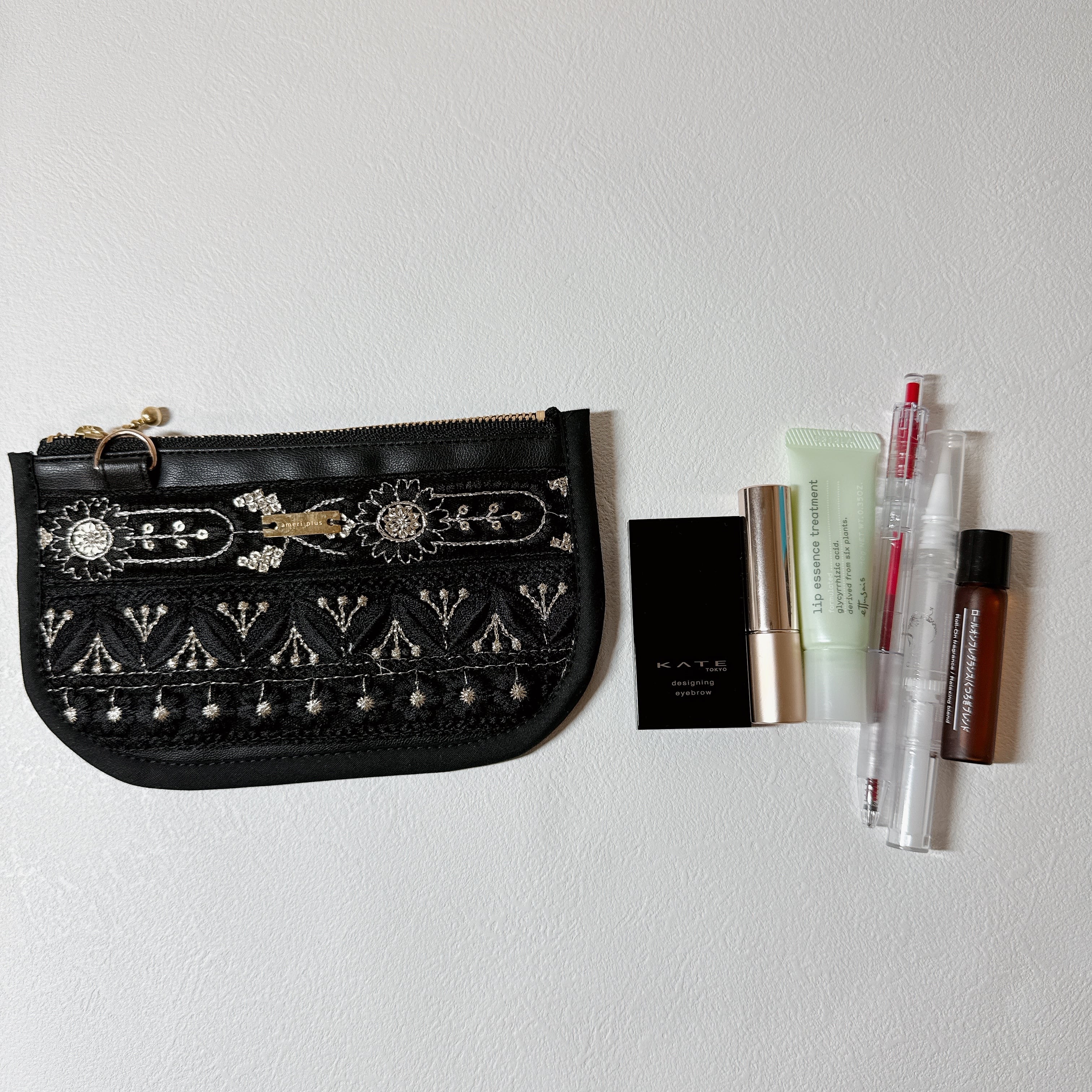 横幅が広く、コスメやモバイルバッテリー、除菌シート、鍵などをすっきり収納できます。
