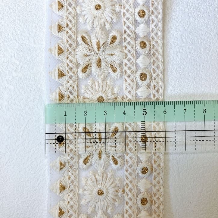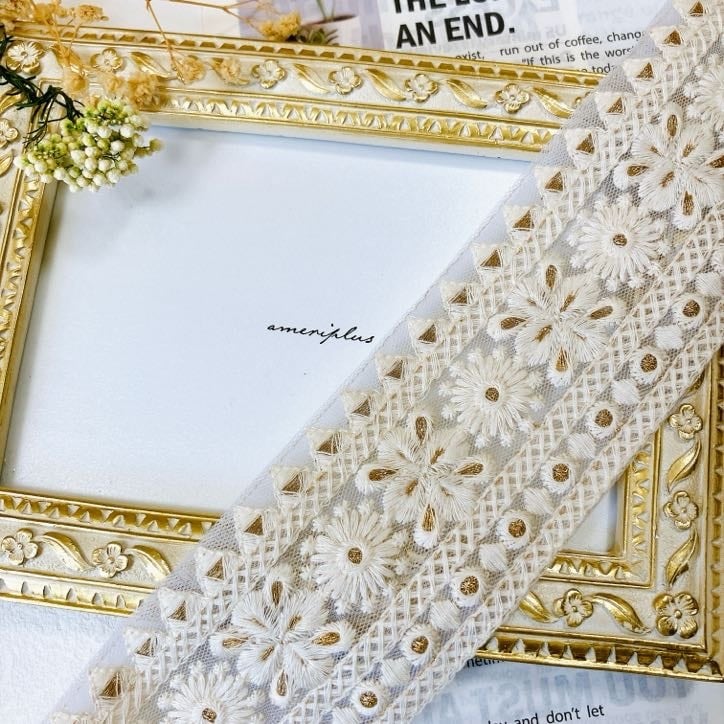 フローラデイジー [アイボリー]インド刺繍リボン A_0416