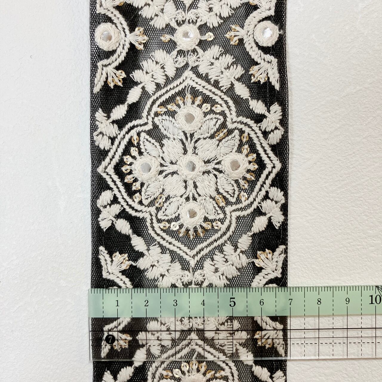 ロイヤルオーナメント [ブラック]インド刺繍リボン A_0425