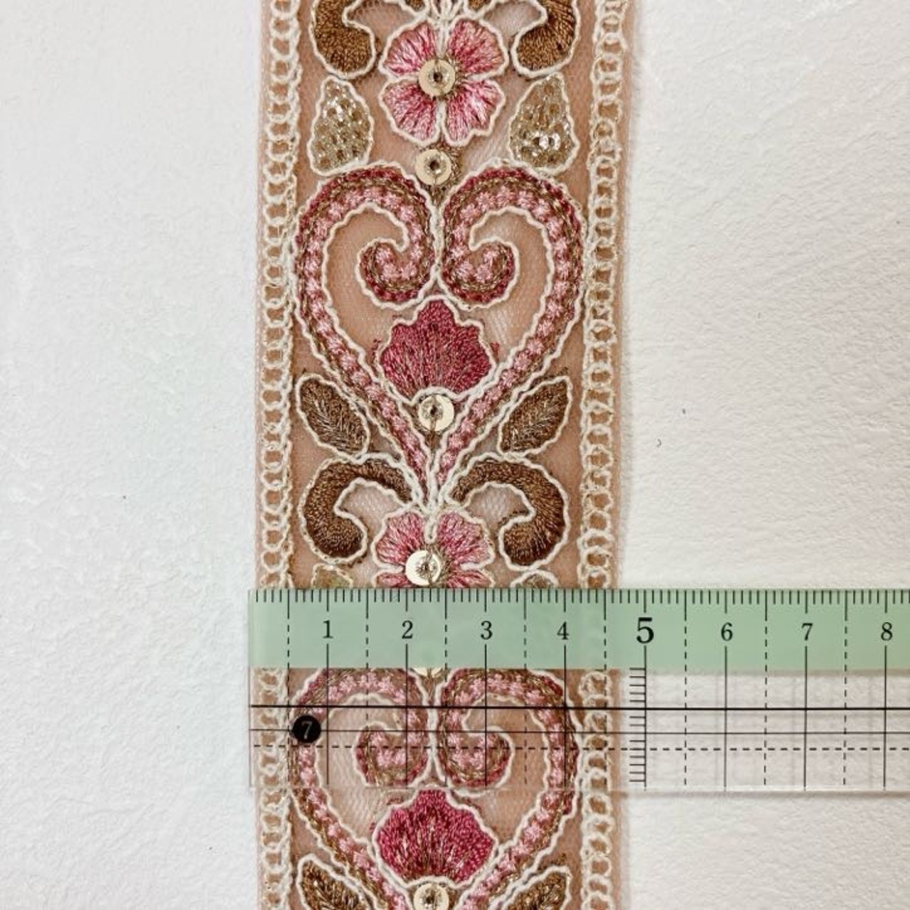 エレガンスアラベスク [ローズ]インド刺繍リボン A_0429