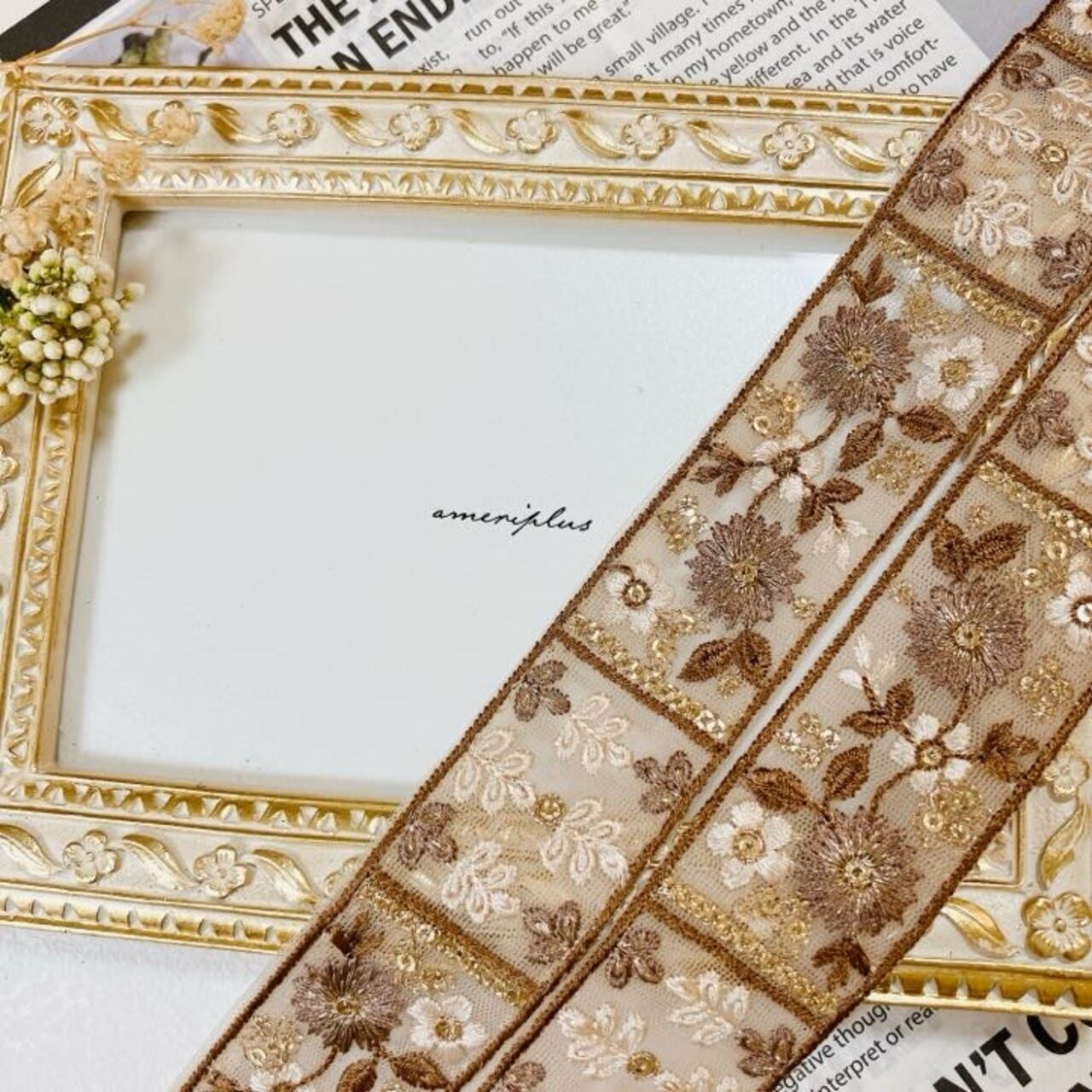 ブルームクラシック [モカブラウン]インド刺繍リボン A_0438