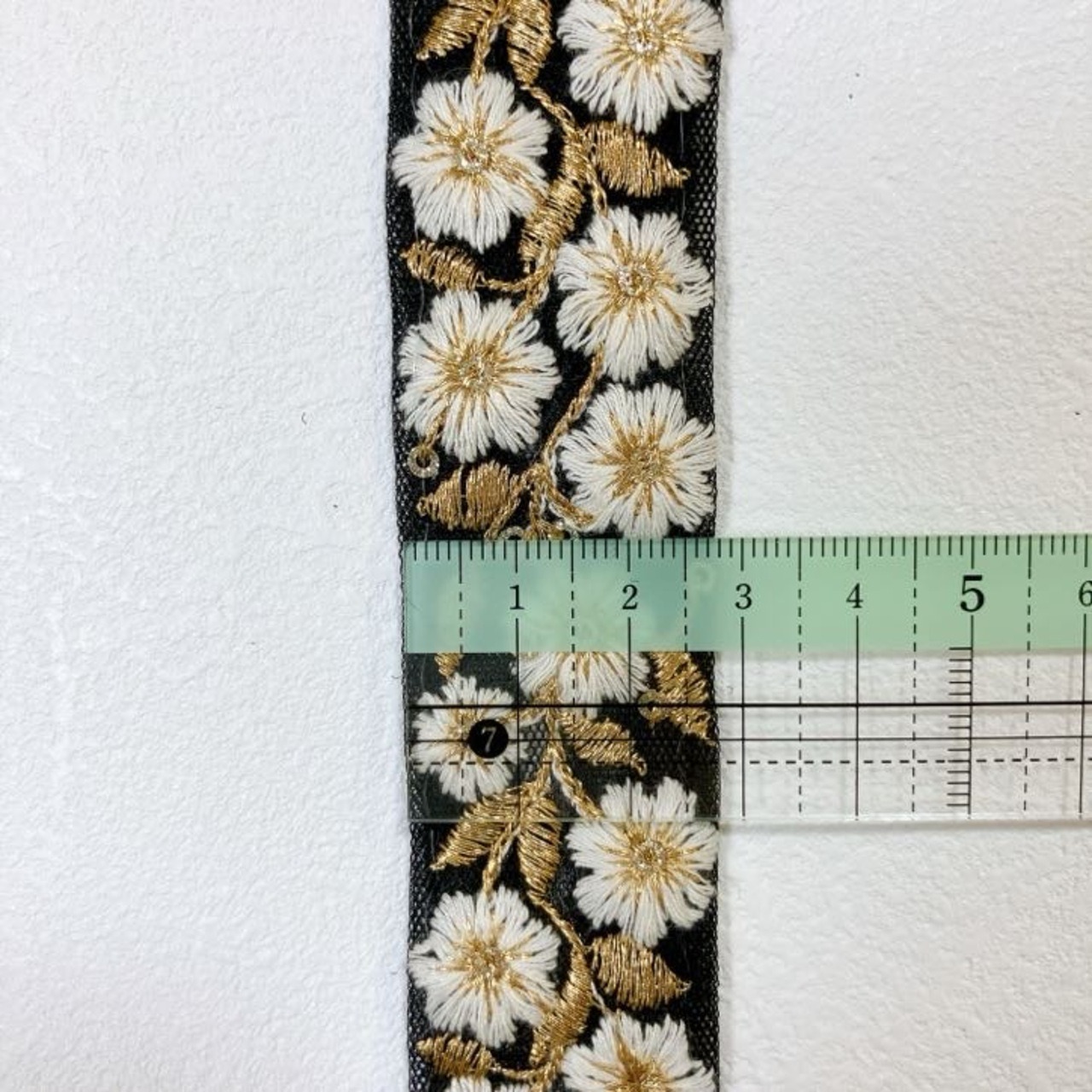 デイジーブロッサム [ジェットブラック]インド刺繍リボン A_0447