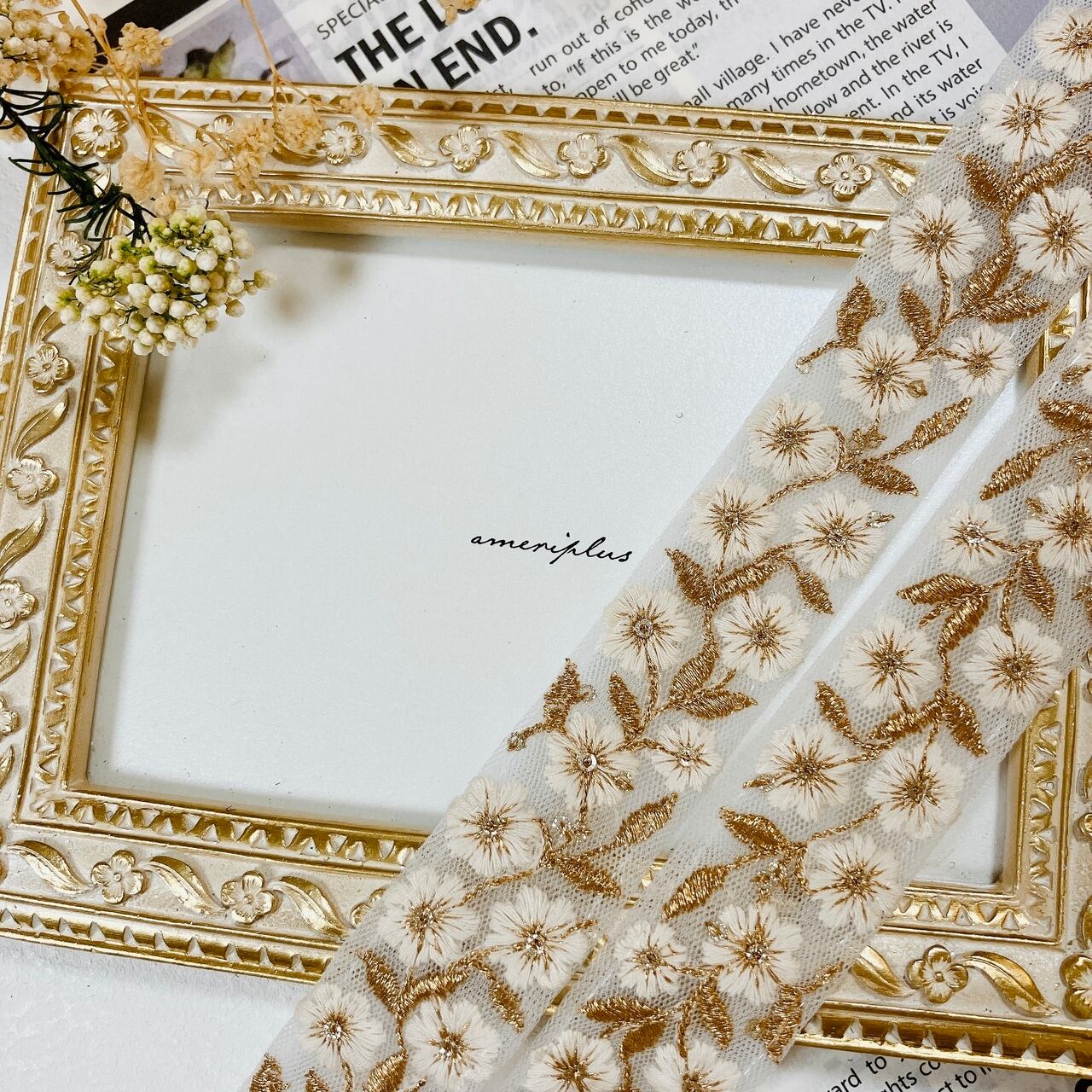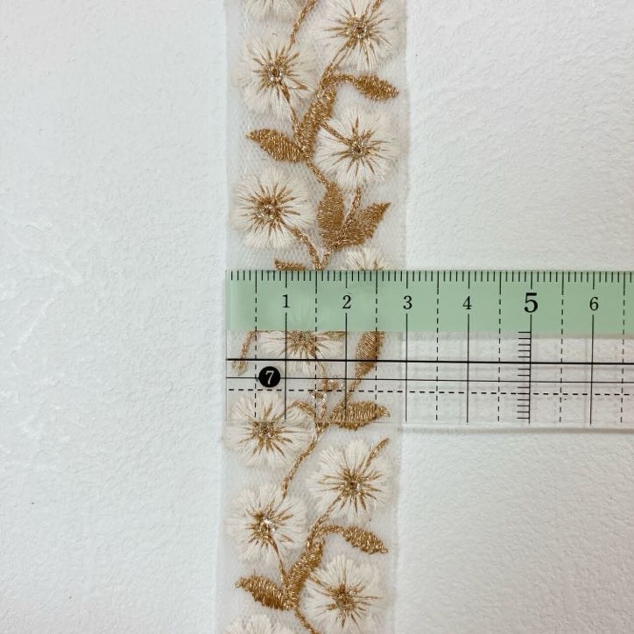 デイジーブロッサム [アイボリー]インド刺繍リボン A_0448