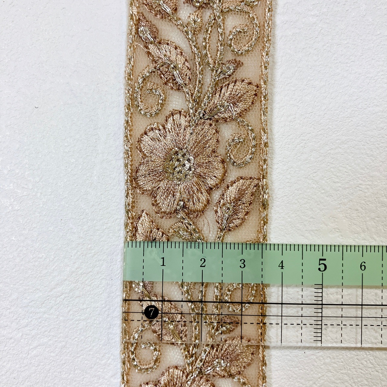 ロイヤルブロッサム [ピンクベージュ]インド刺繍リボン A_0456