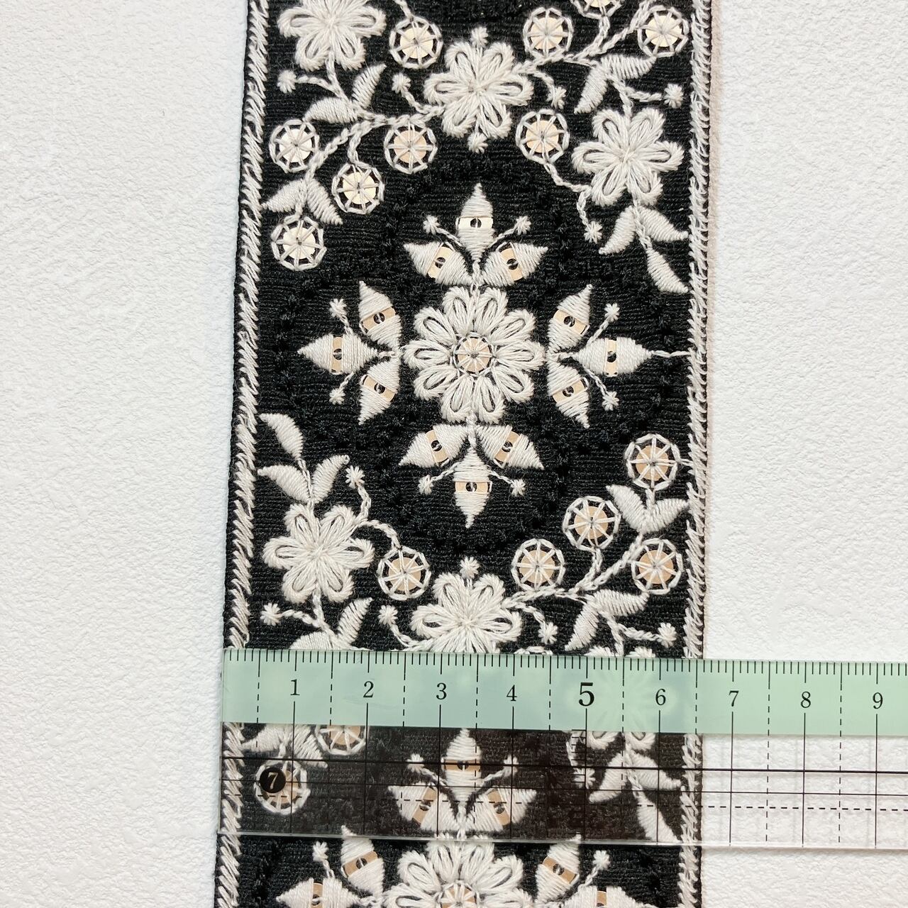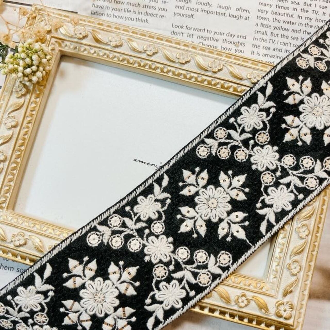 クラシックモチーフレース [ブラックアイボリー]インド刺繍リボン A_0464