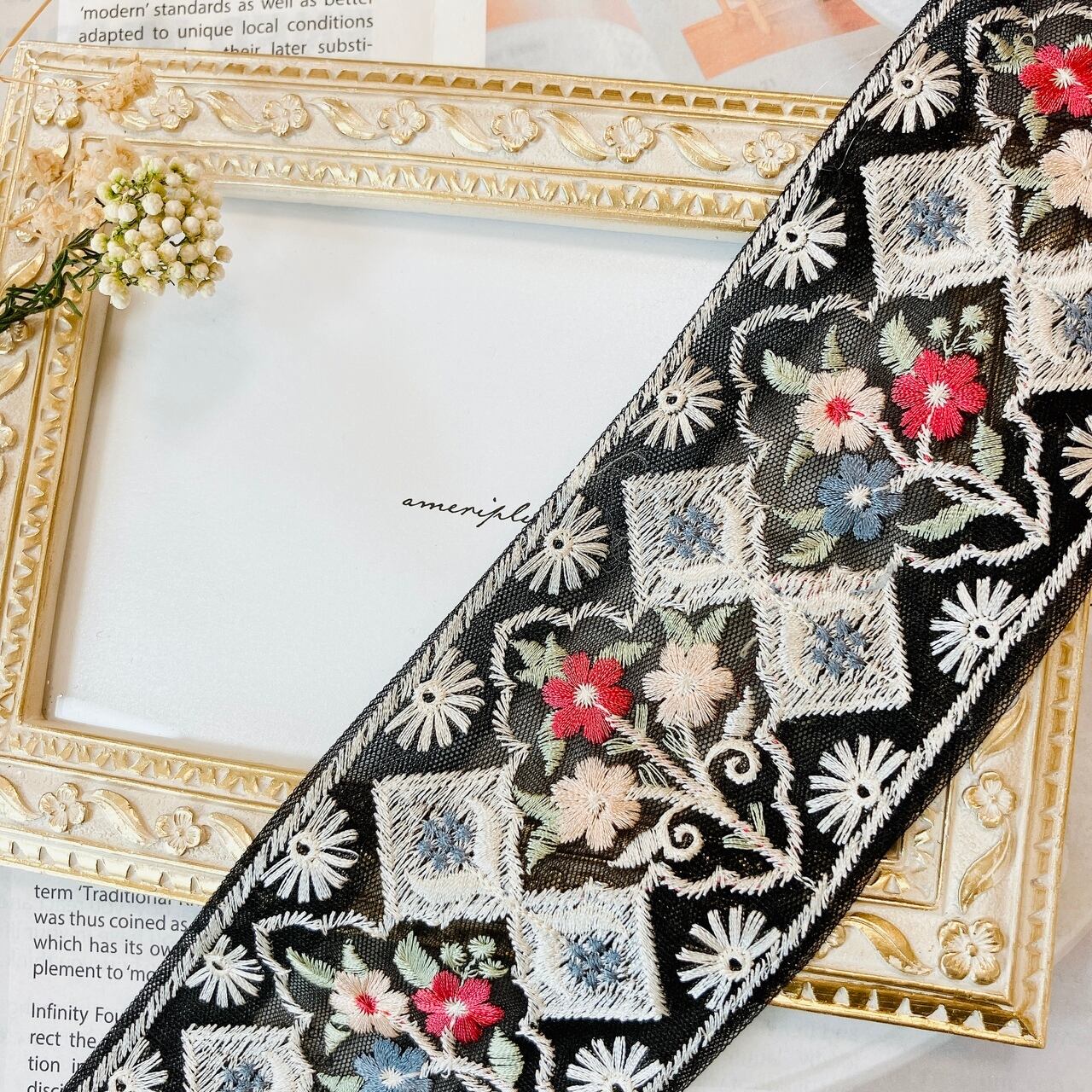 インドから直輸入した、カラフルで繊細なミシン刺繍が魅力のリボンです。