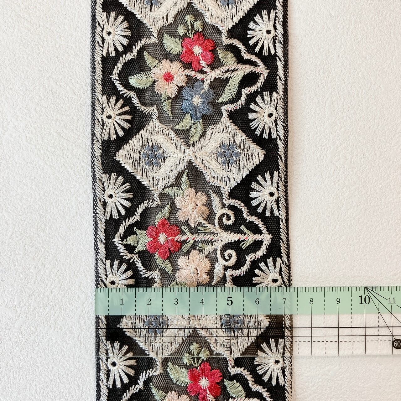 ブロッサムモロッカンレースリボン [スモーキーブラック]インド刺繍リボン A_0491