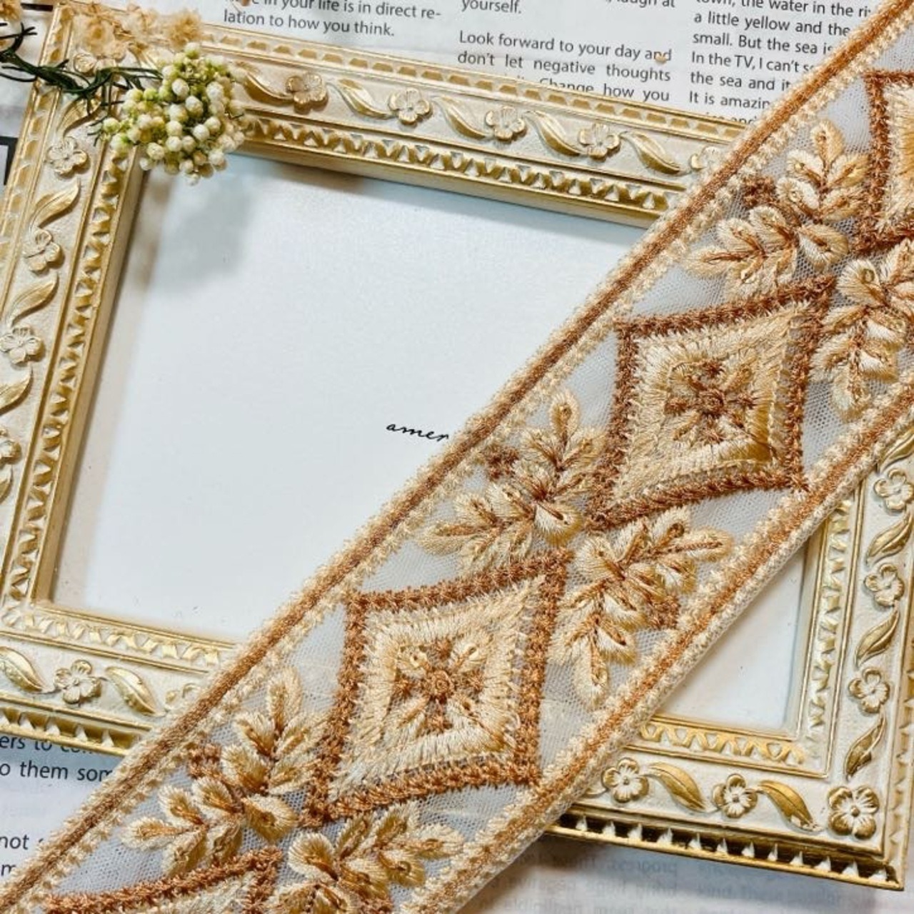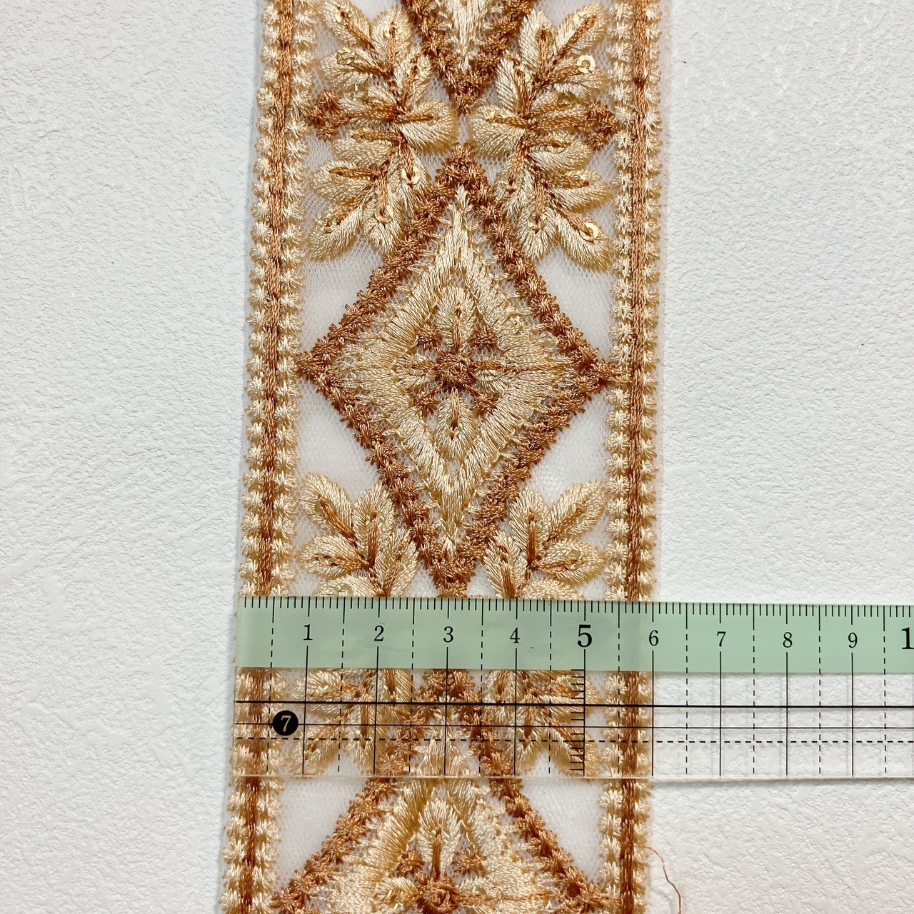 ロイヤルリーフリボン [シャンパンベージュ]インド刺繍リボン A_0475