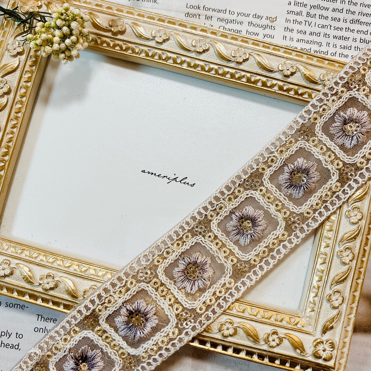 スウィートブロッサム [ラベンダー]インド刺繍リボン A_0479