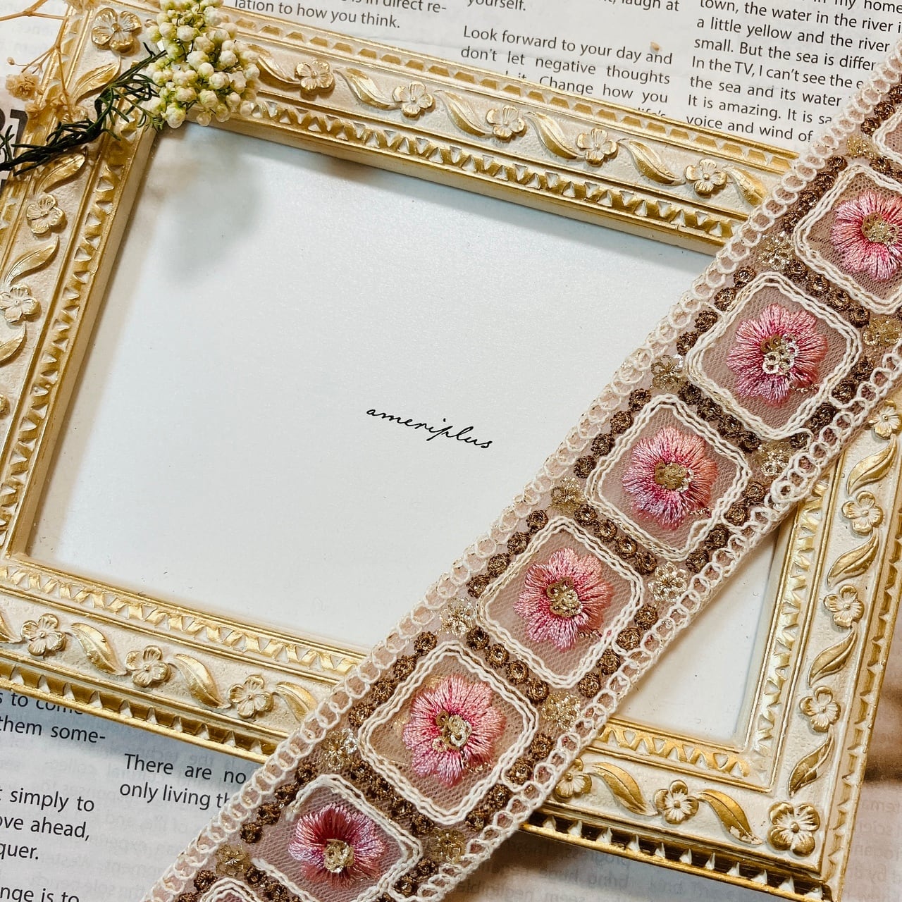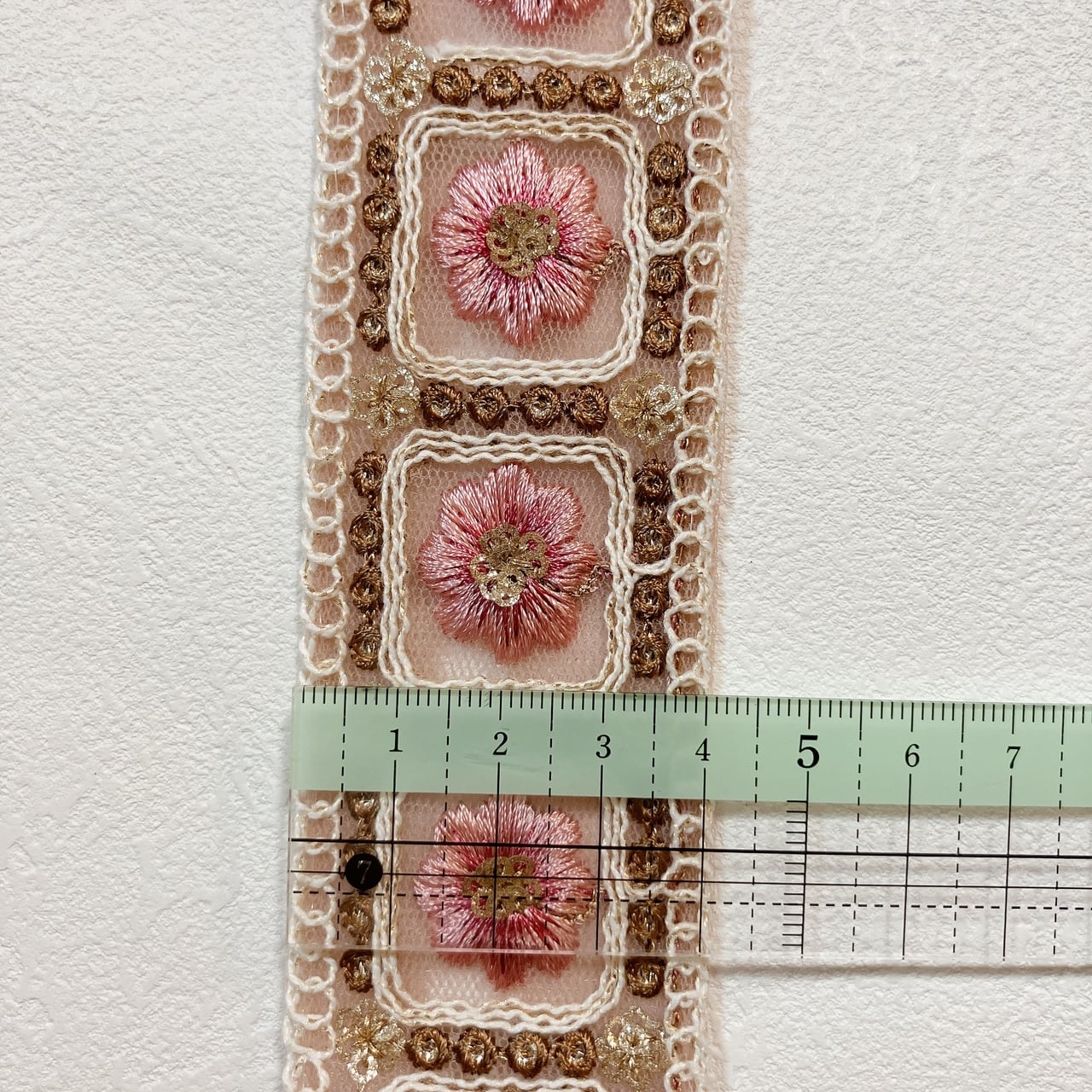スウィートブロッサム [ピンク]インド刺繍リボン A_0432