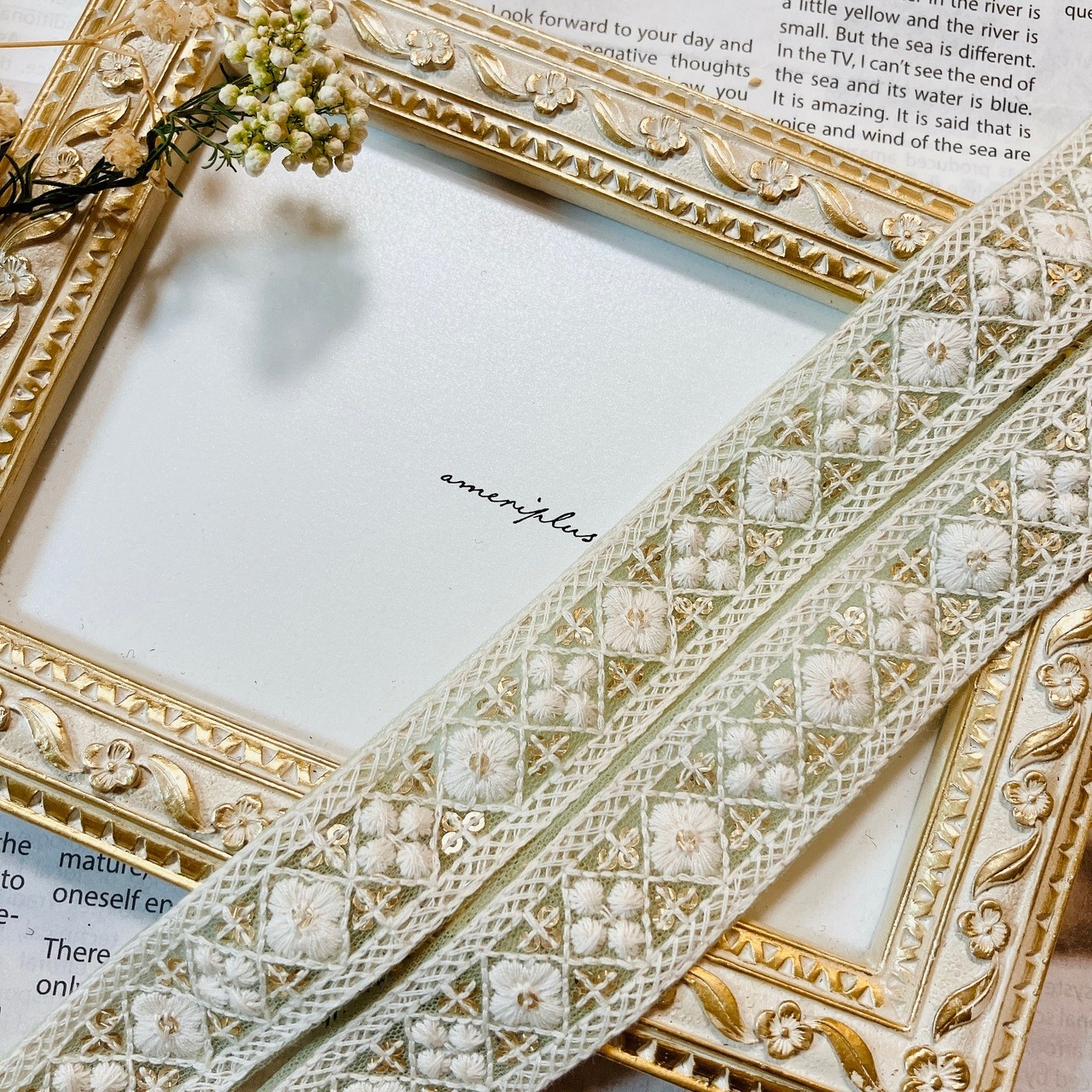 エトワールフローラルレース [セージミント]インド刺繍リボン A_0487