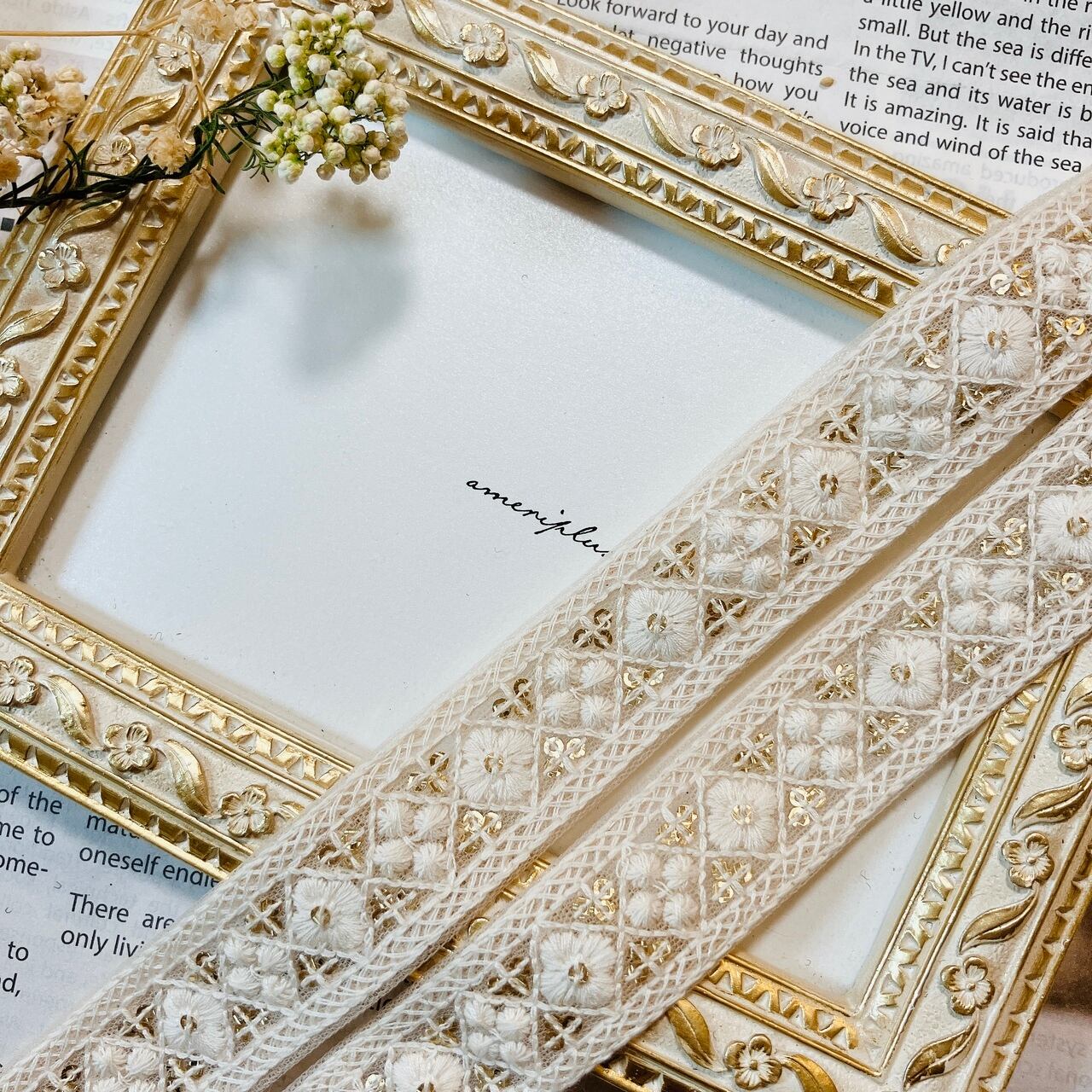 エトワールフローラルレース [アイボリーシャンパン]インド刺繍リボン A_0488