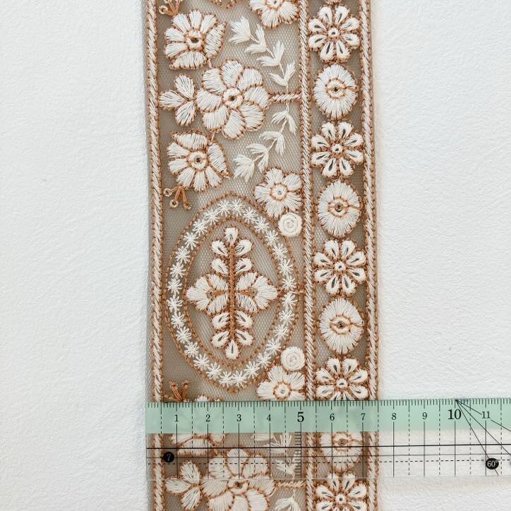 アンティーク・ボタニカルエンブロイダリーリボン [トープ]インド刺繍リボン A_0506