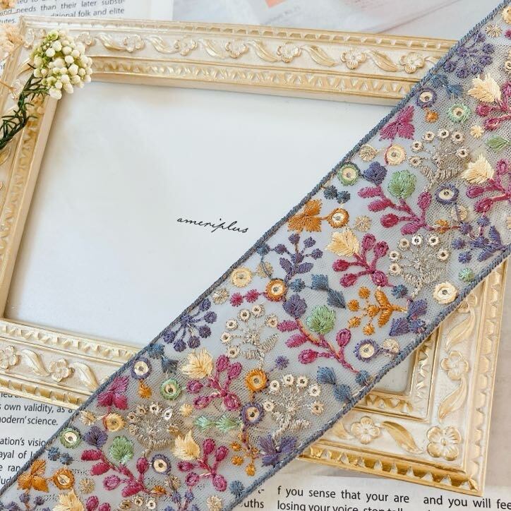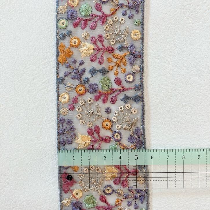 ロマンティックガーデン・チュールエンブロイダリーリボン [ミスティグレー]インド刺繍リボン A_0510