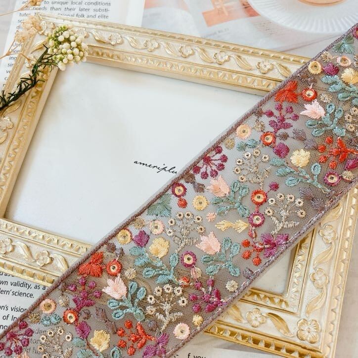 インドから直輸入した、カラフルで繊細なミシン刺繍が魅力のリボンです。