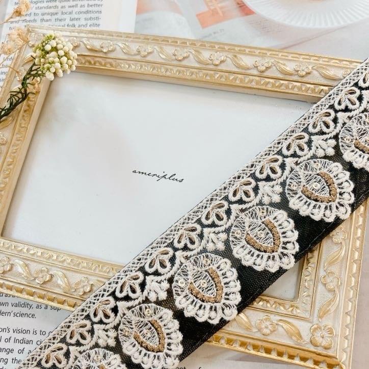 クラシックオリエンタル・アイモチーフレースリボン [ブラック]インド刺繍リボン A_0515
