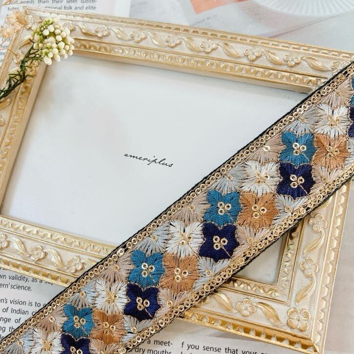 インドから直輸入した、カラフルで繊細なミシン刺繍が魅力のリボンです。