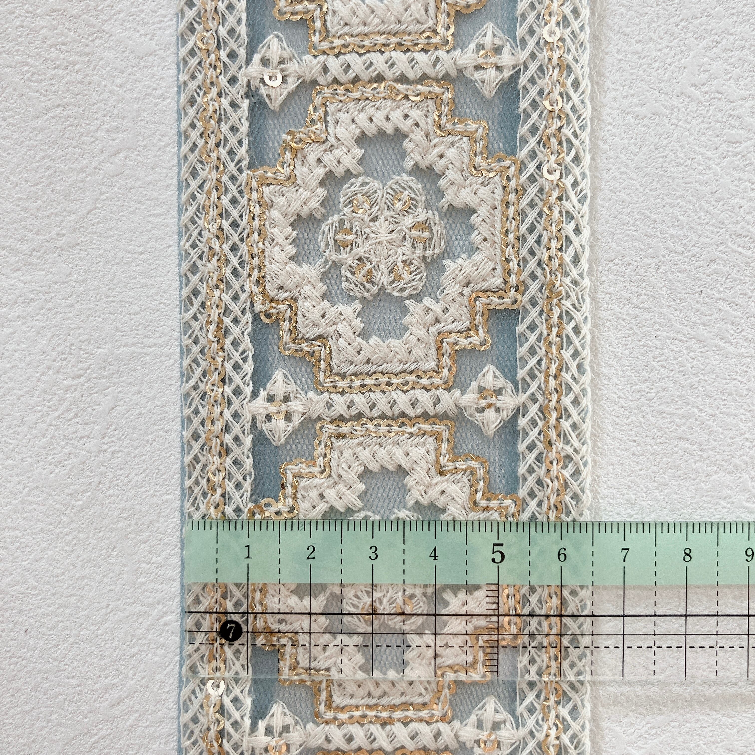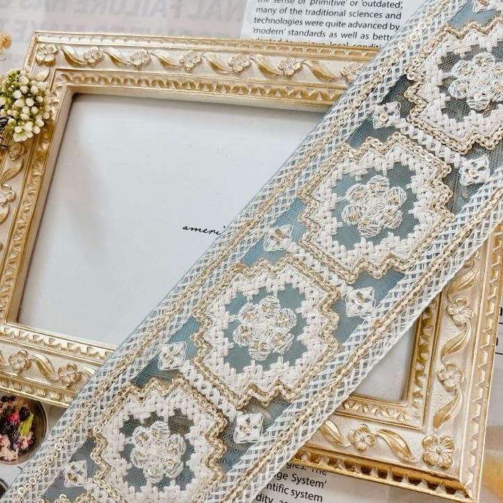 クラシック・オーナメントレースリボン [スモーキーブルー]インド刺繍リボン A_0527